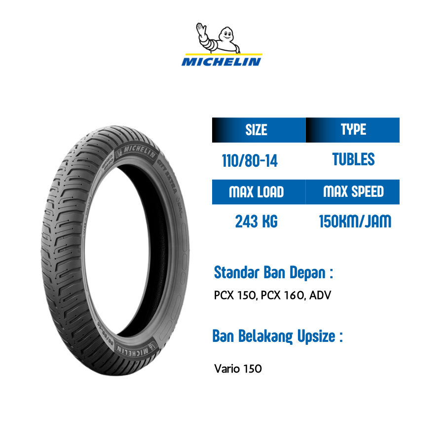 Ban Motor City Extra 110-80 R14 - Ban Tubles Michelin
