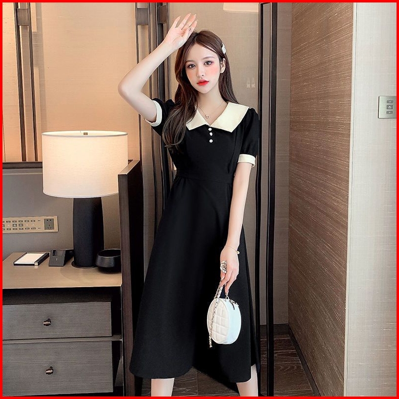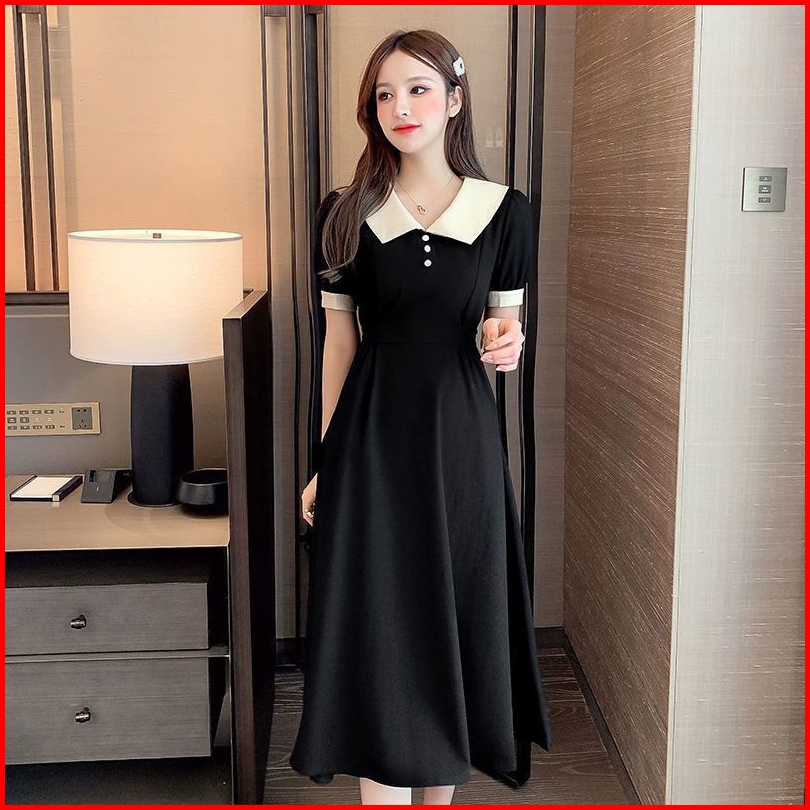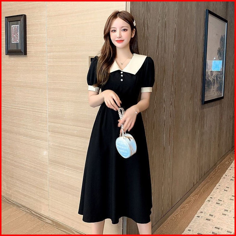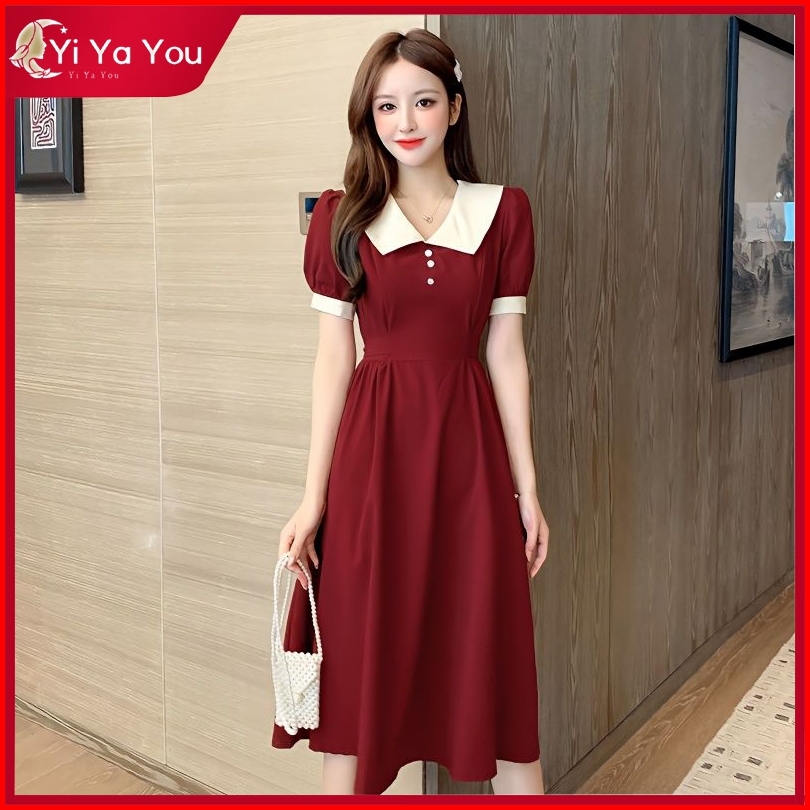 Yi Ya You - Dress Midi Gaya Santai Kerah Kemeja Dress Kemeja Simpel Dress Kantor Dress Sederhana - Midi Dress Dress Vint
