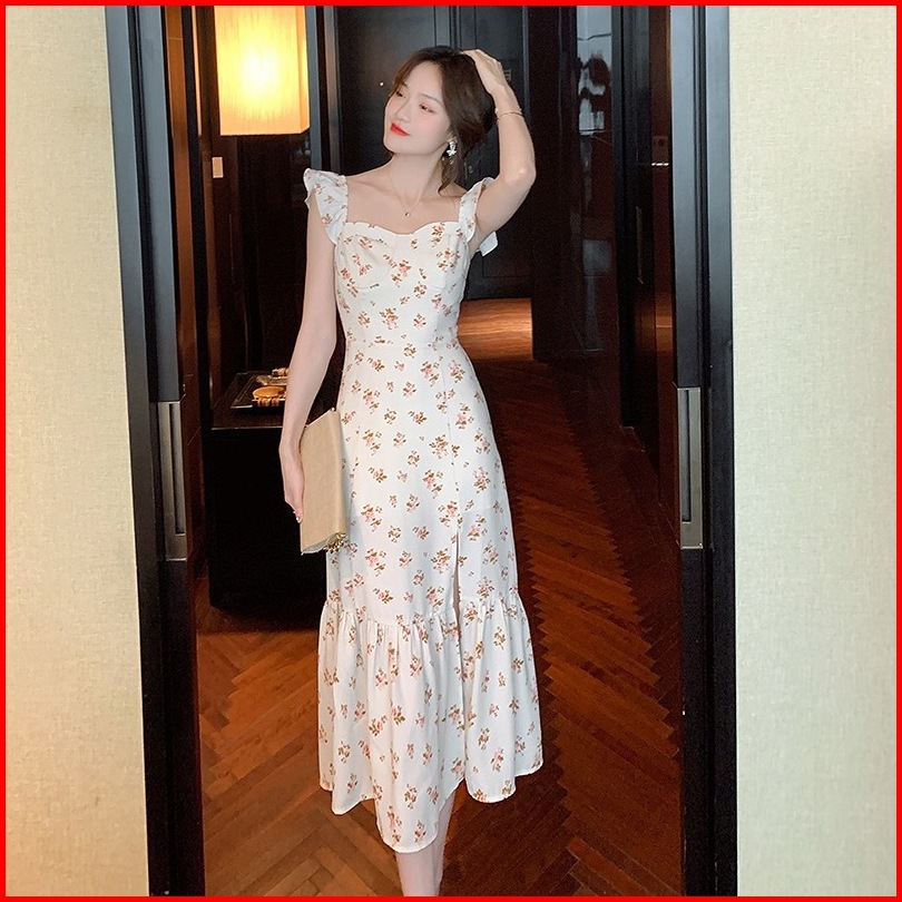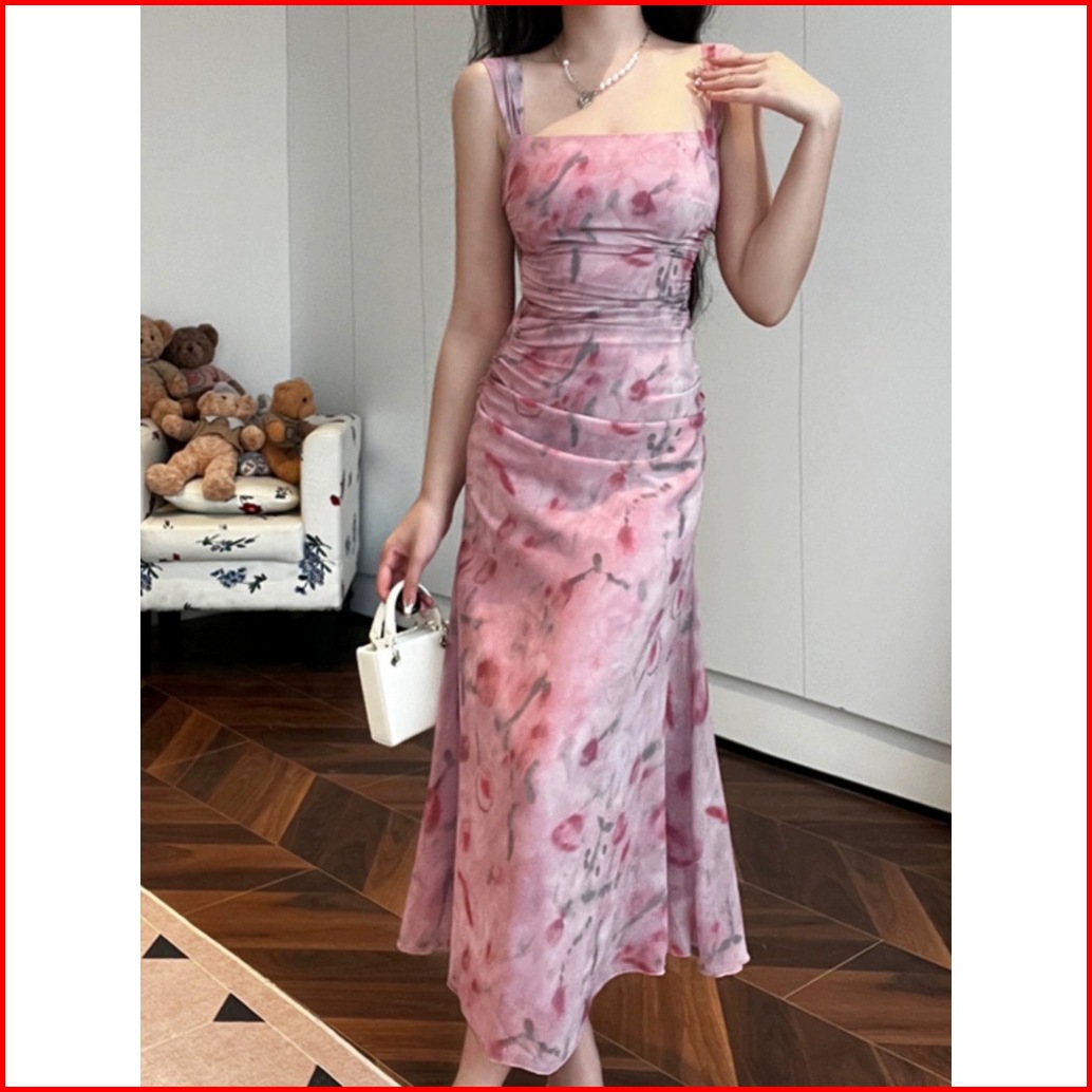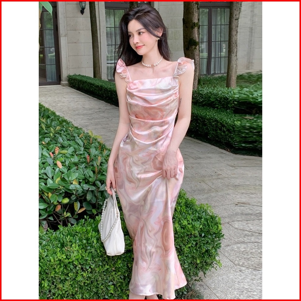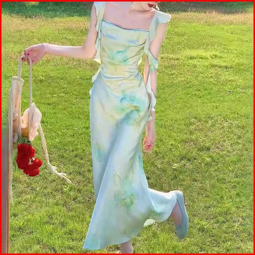 Emita Bloom Flowy Long Dress Motif Bunga Pantai Korean Style Dress Wanita Kekinian Hijau Sage Dress Press Body Terbaru 2