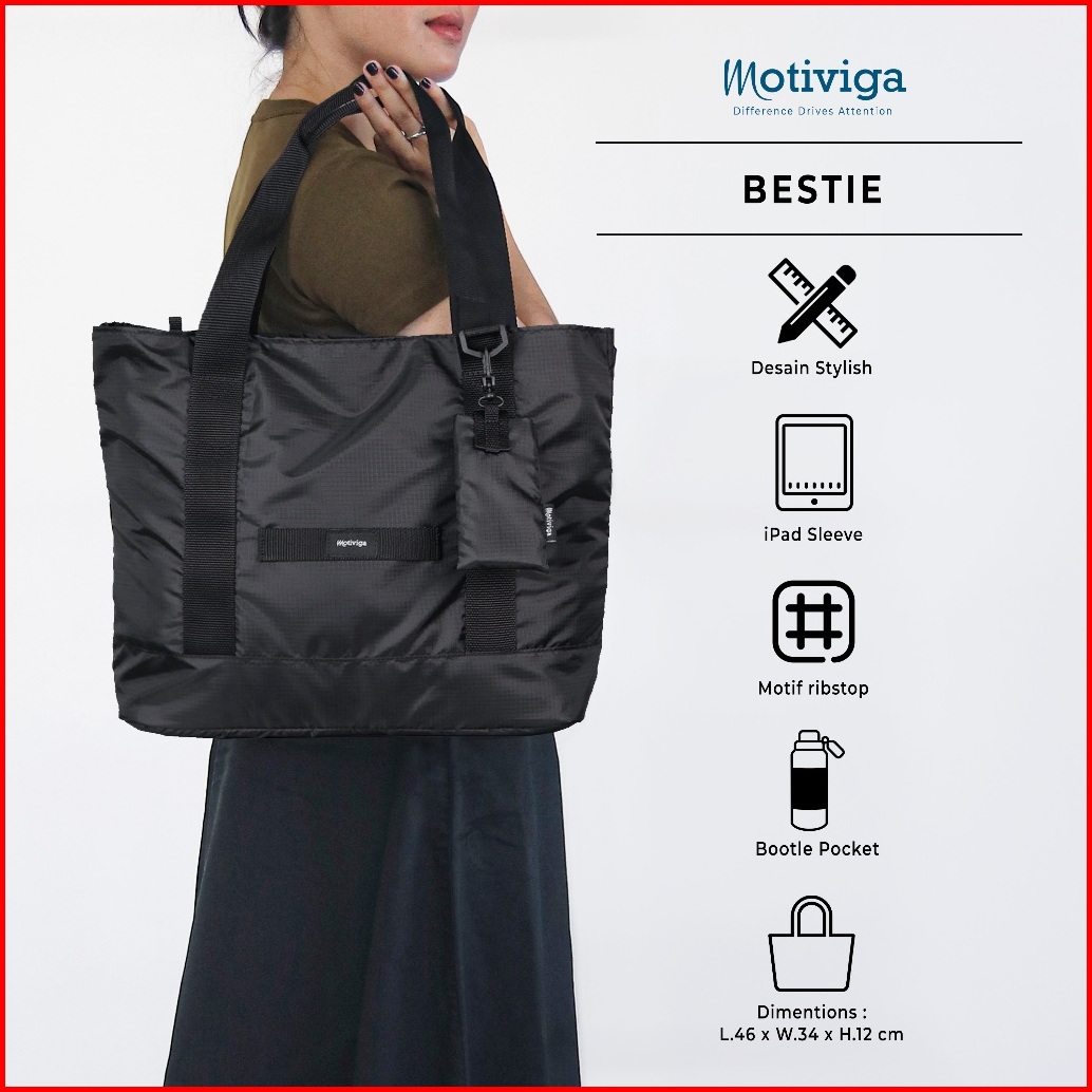 Motiviga Tas Totebag Jinjing Unisex Bestie Black