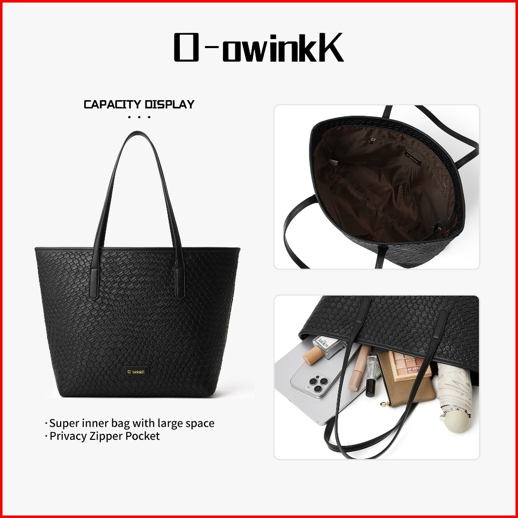O-owinkk Tas Wanita Rhiny Bag Tas Toteba Pu Leather Tas Anyaman Dengan Kapasitas Besar Tahan Air Tas Untuk Pernikahan
