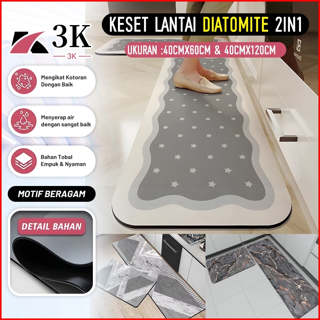 3k Surabaya Keset Dapur Diatomite 2in1 Anti Slip Nyerap Air Kitchen Floor Mat Minimalis Premium