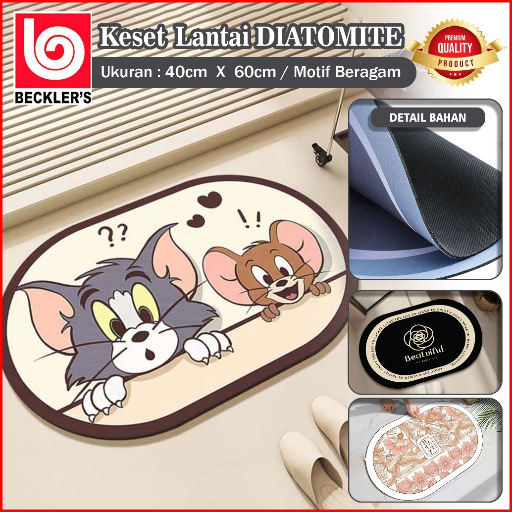 Beckler S Keset Diatomite Uk 40x60cm Bundar Motif Kekinian Lucu Keset Kamar Mandi Anti Slip