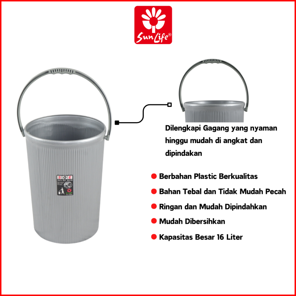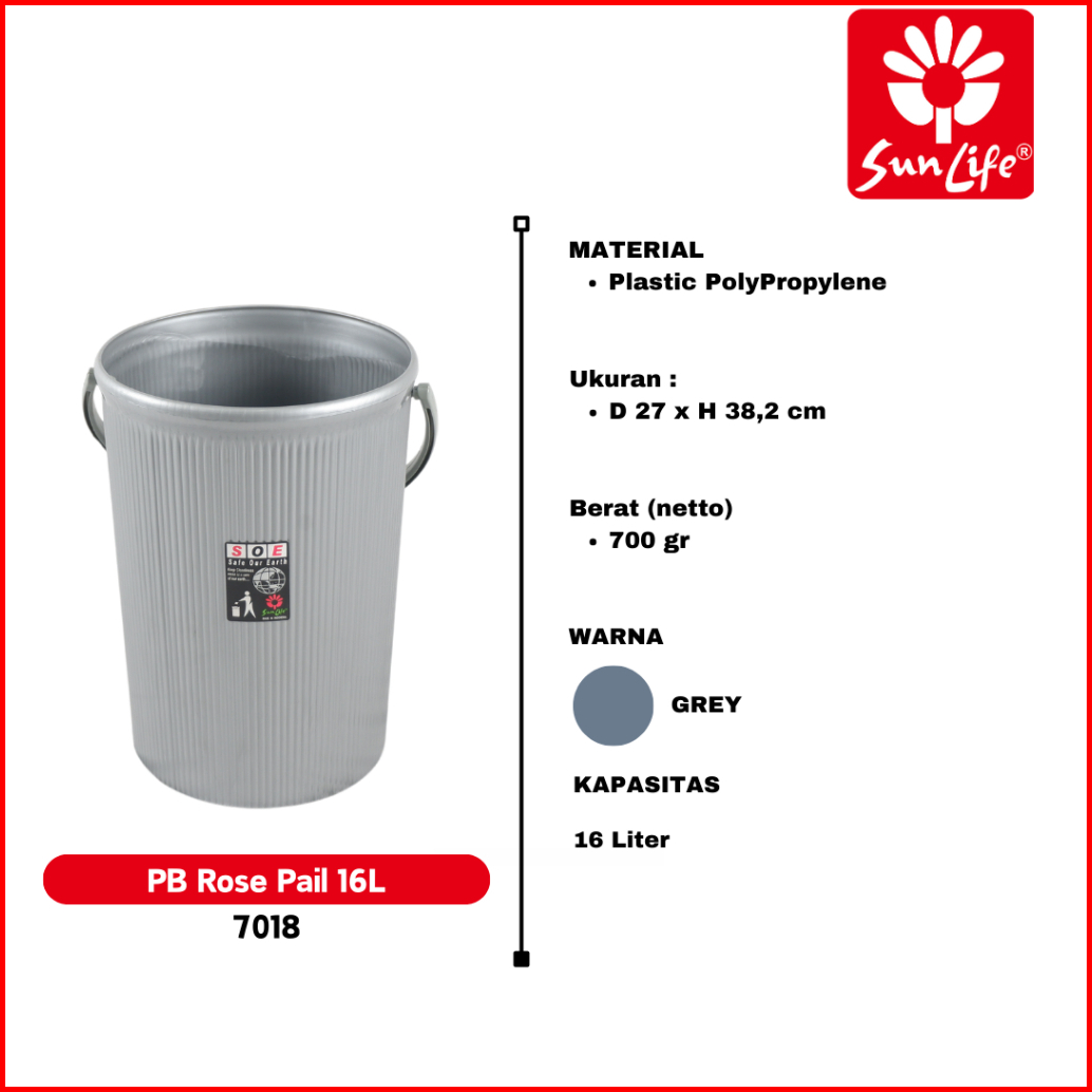 Sunlife Rose Pail 16l 9l Ember Plastik Ember Tebal Kapasitas Besar 9-16 Liter Snl-7018-pb