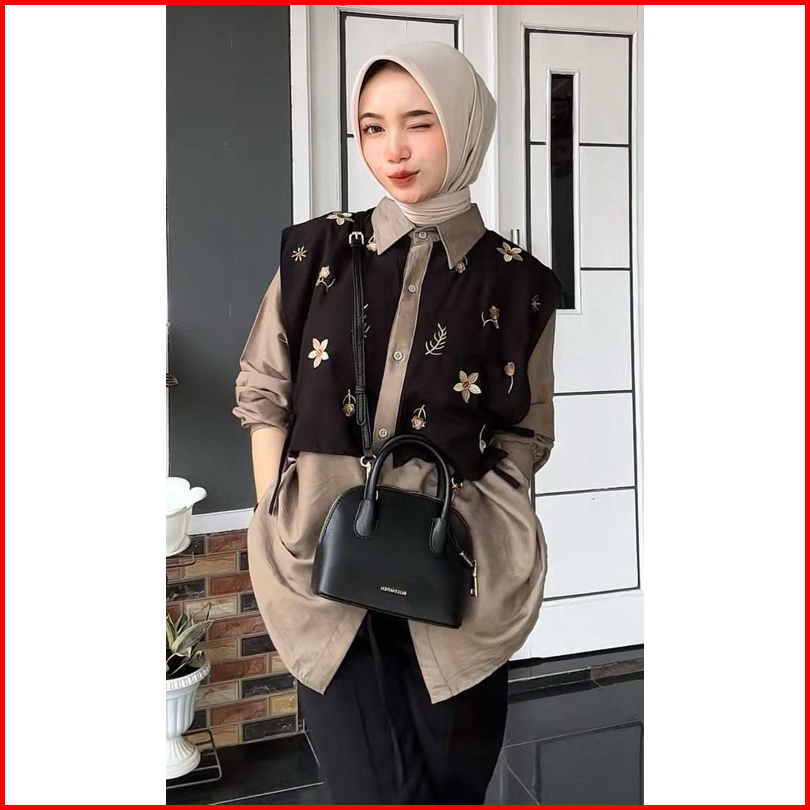 Aura Kemeja Bordil Tali Samping Kanan Kiri Size Jumbo