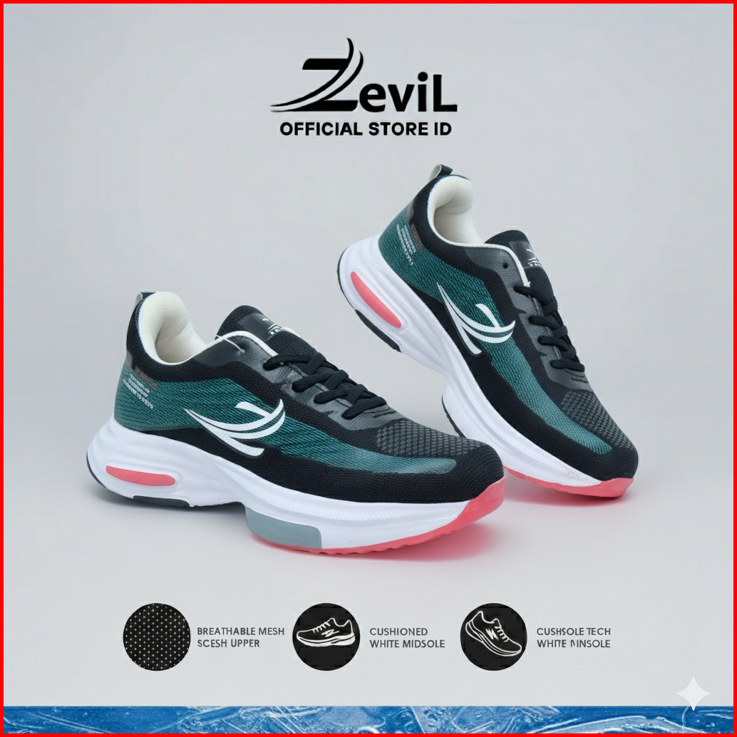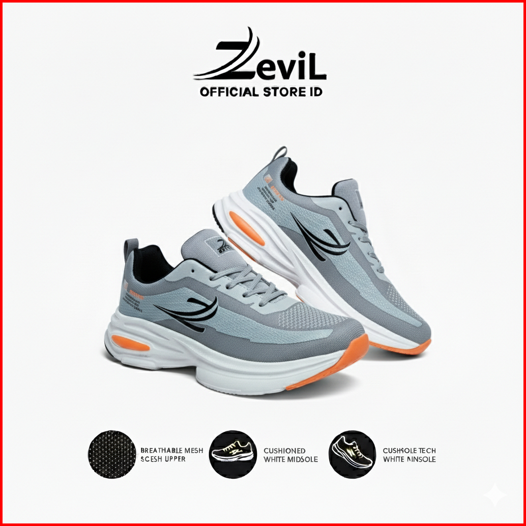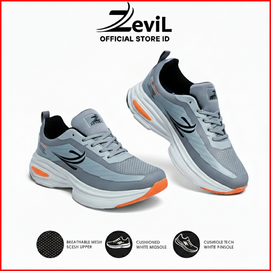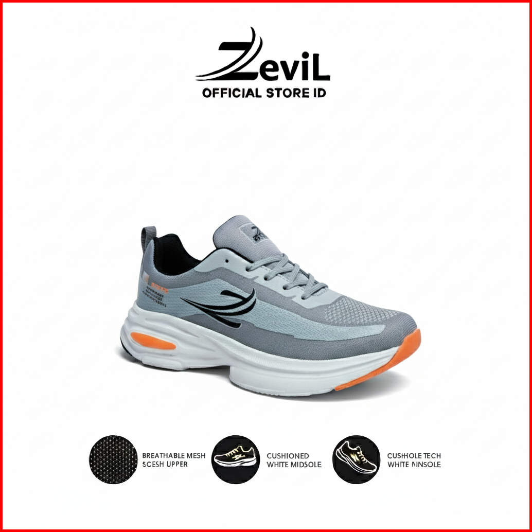 Zevil Est - Sepatu Running Pria Wanita Abu Hitam Olahraga Jogging Lari