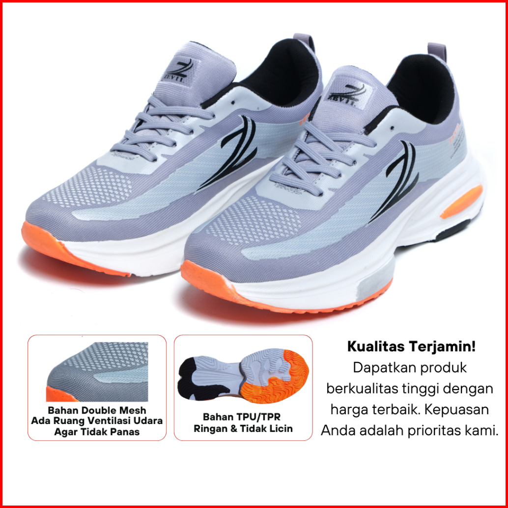 Zevil Est - Sepatu Olahraga Pria Sneaker Lari Sport Men Running Jogging Abu Oren 38-44