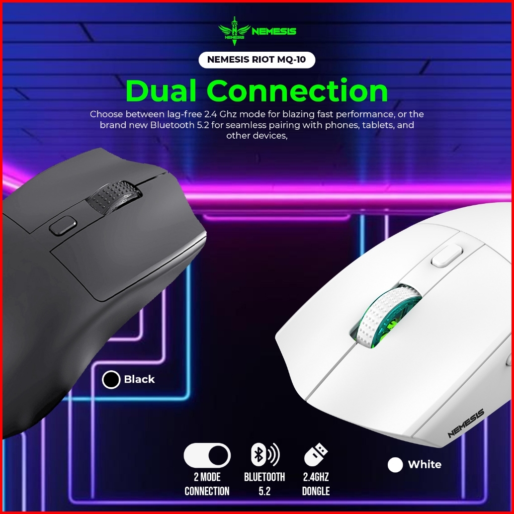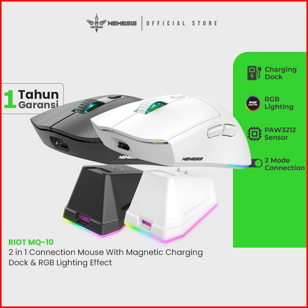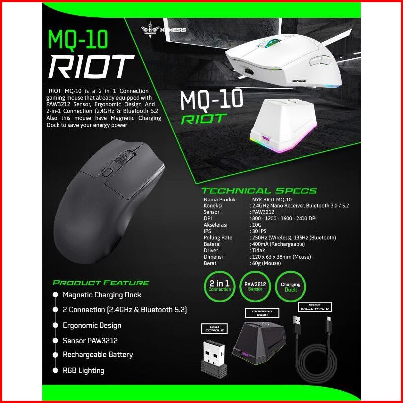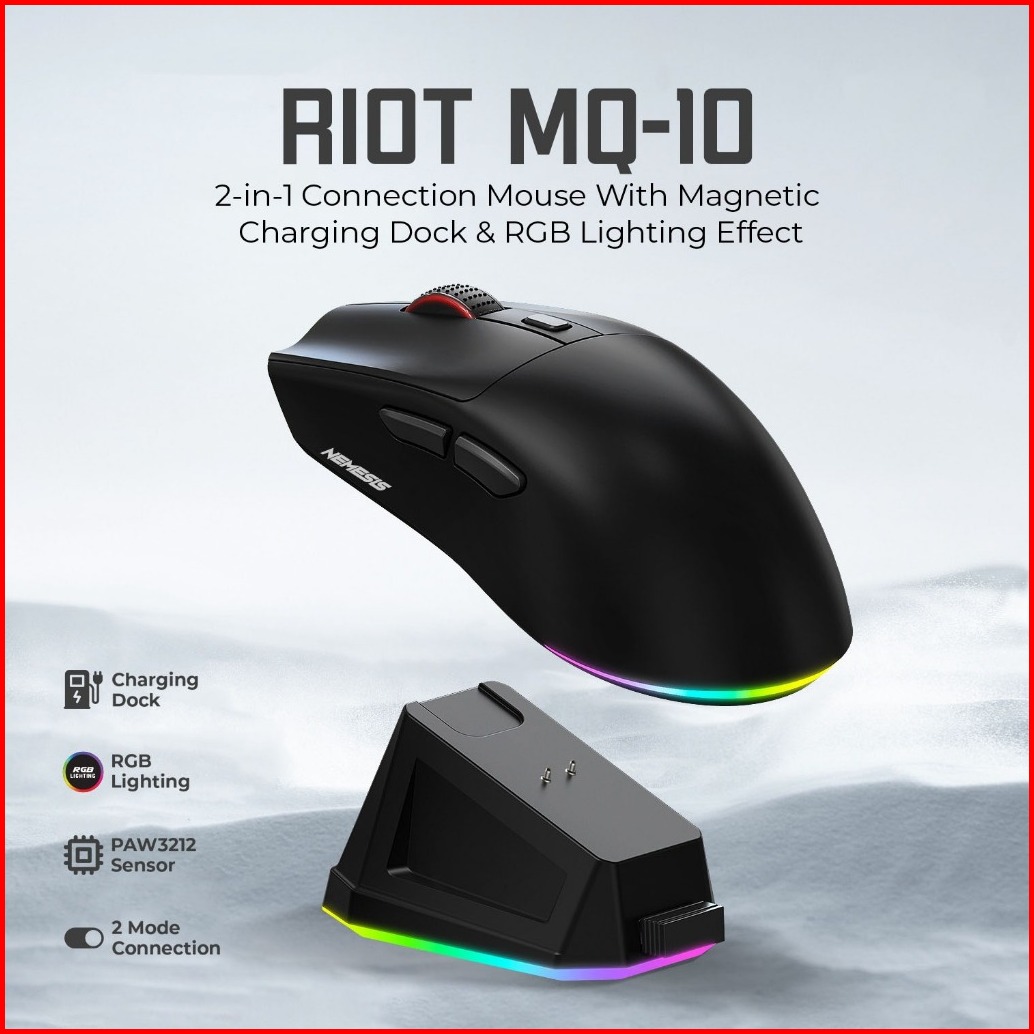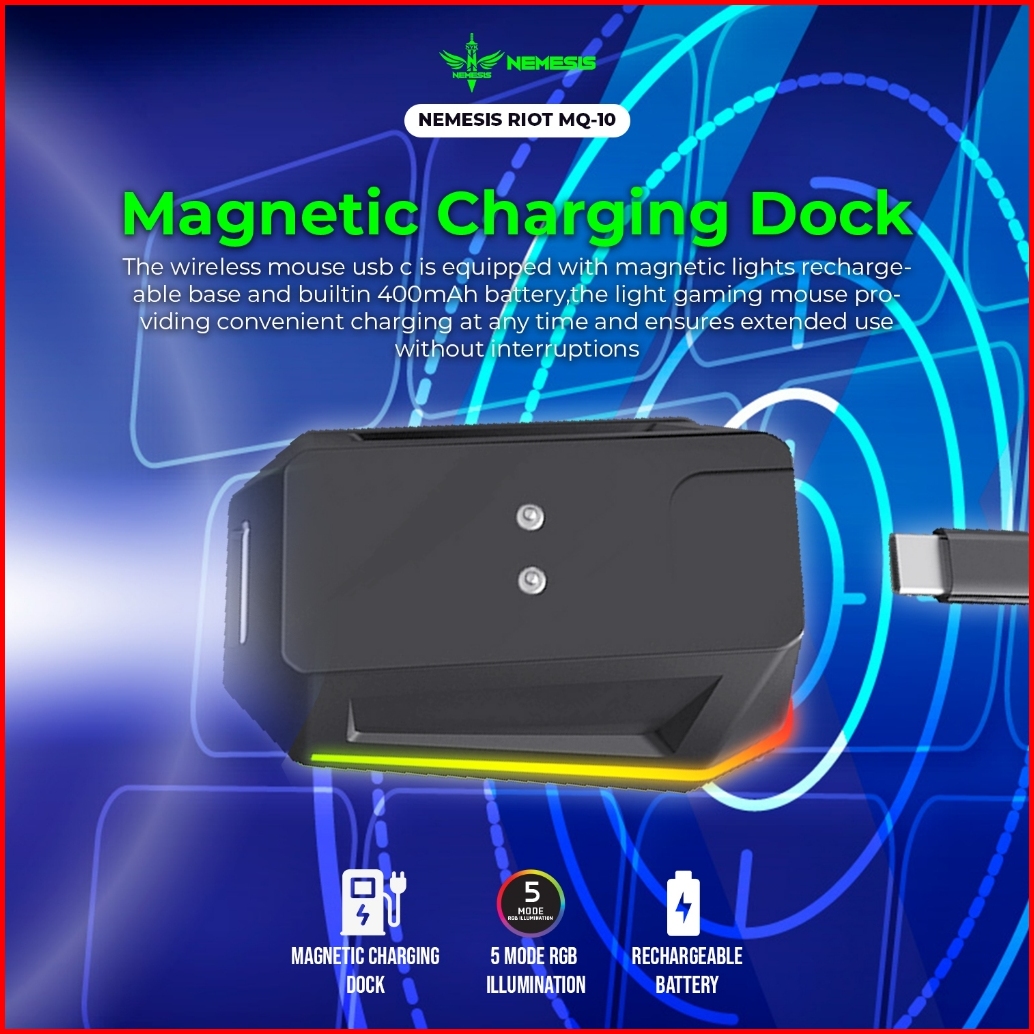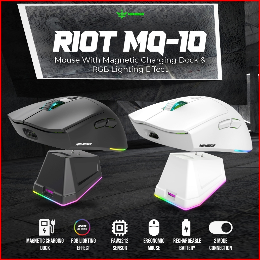 Mouse Wireless Dual Mode Rechargeable With Docking Charging Nemesis Riot Mq-10