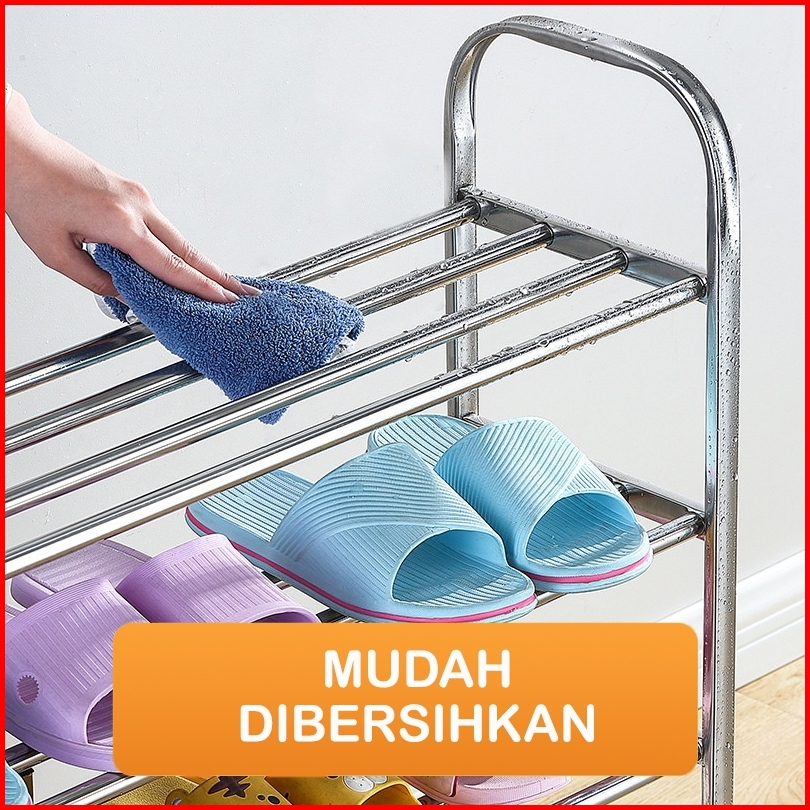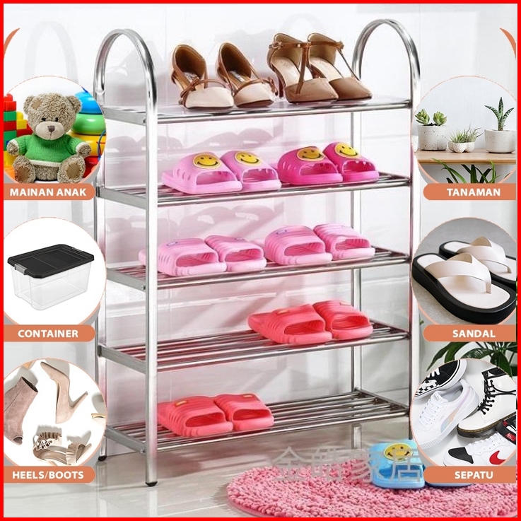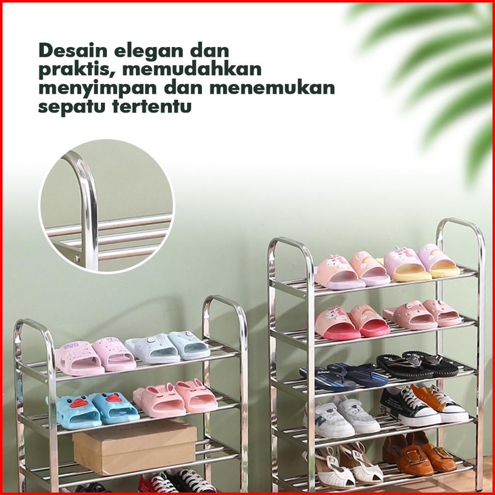 Hot Sale Texania Rak Sepatu Sanda Stainless Steel Portable Kuat Tempat Sepatu Sandal Multifungsi Kapasitas 3 4 5 Susun M