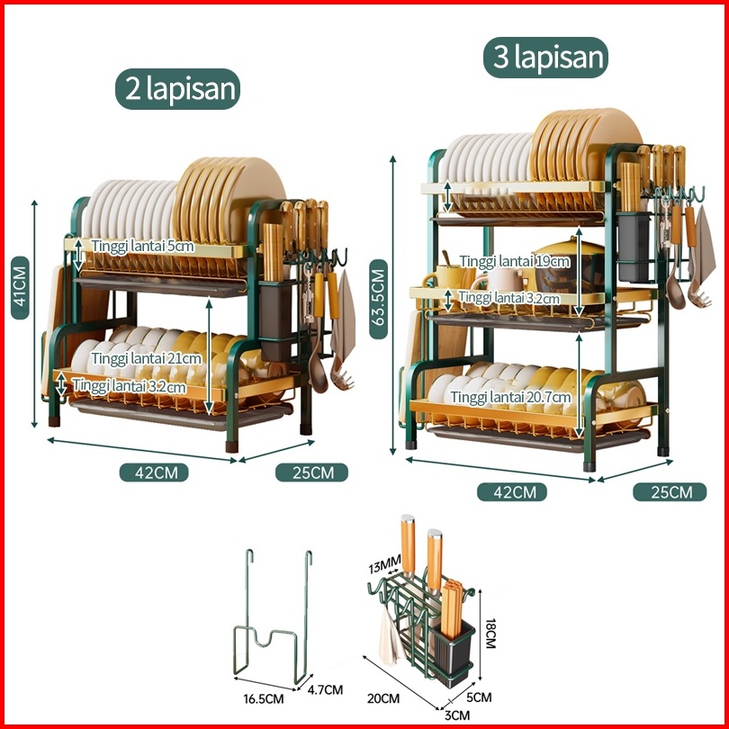 Rak Dapur Rak Piring Rak Serbaguna Rak Dish Drainer Dengan Aksesoris