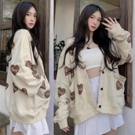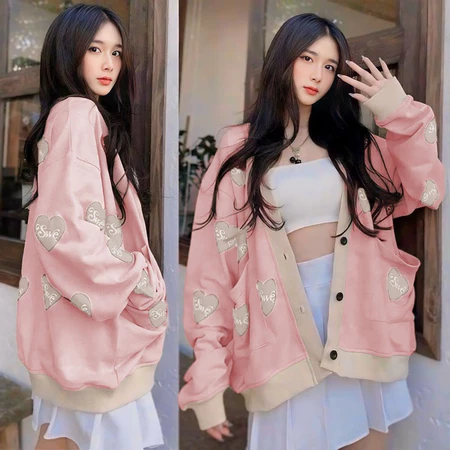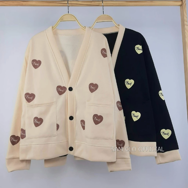 Love Cardie Sweater Oversize Wanita Korean Style Cardy Kancing Bersaku