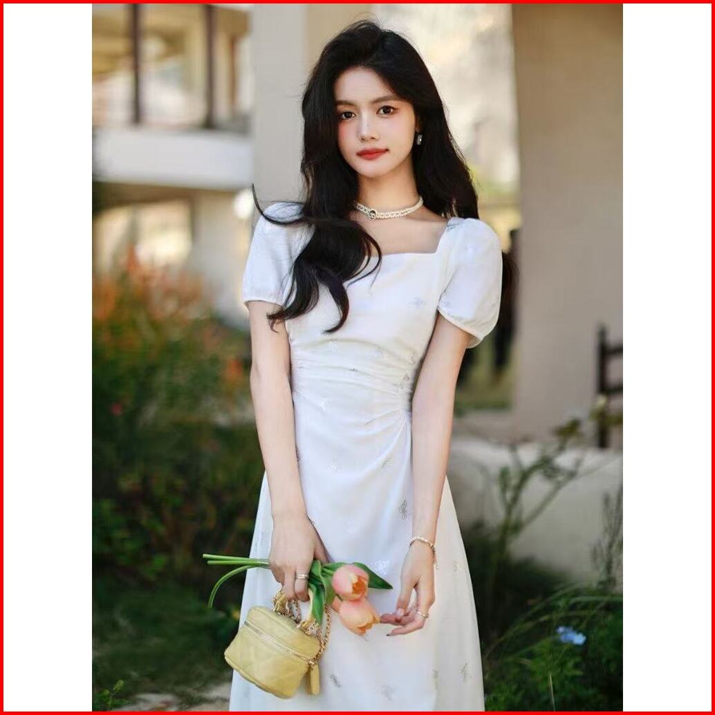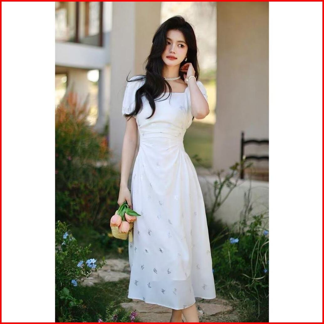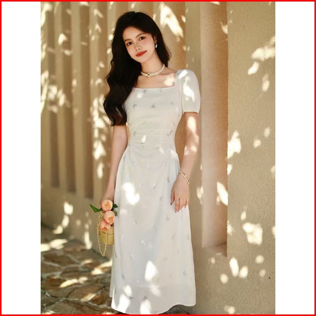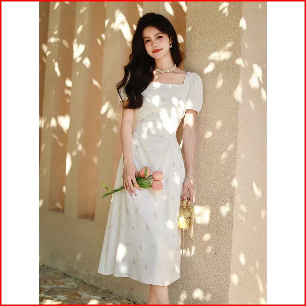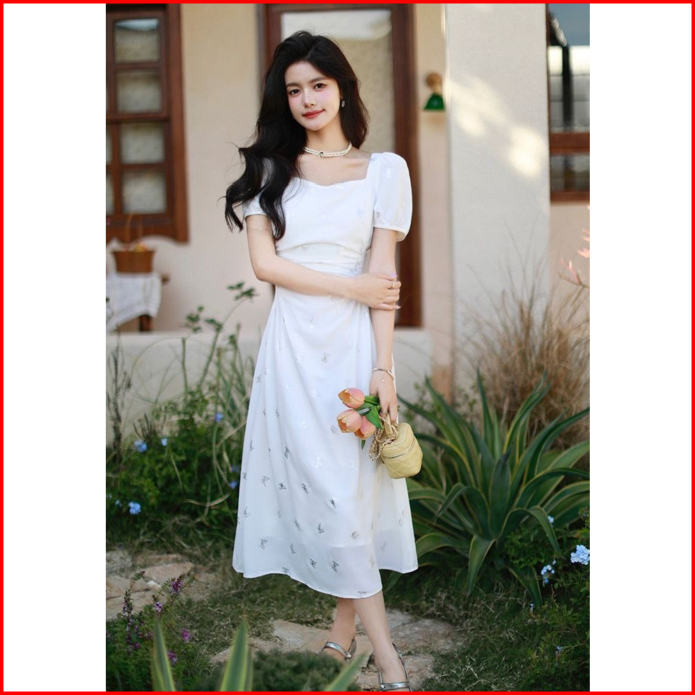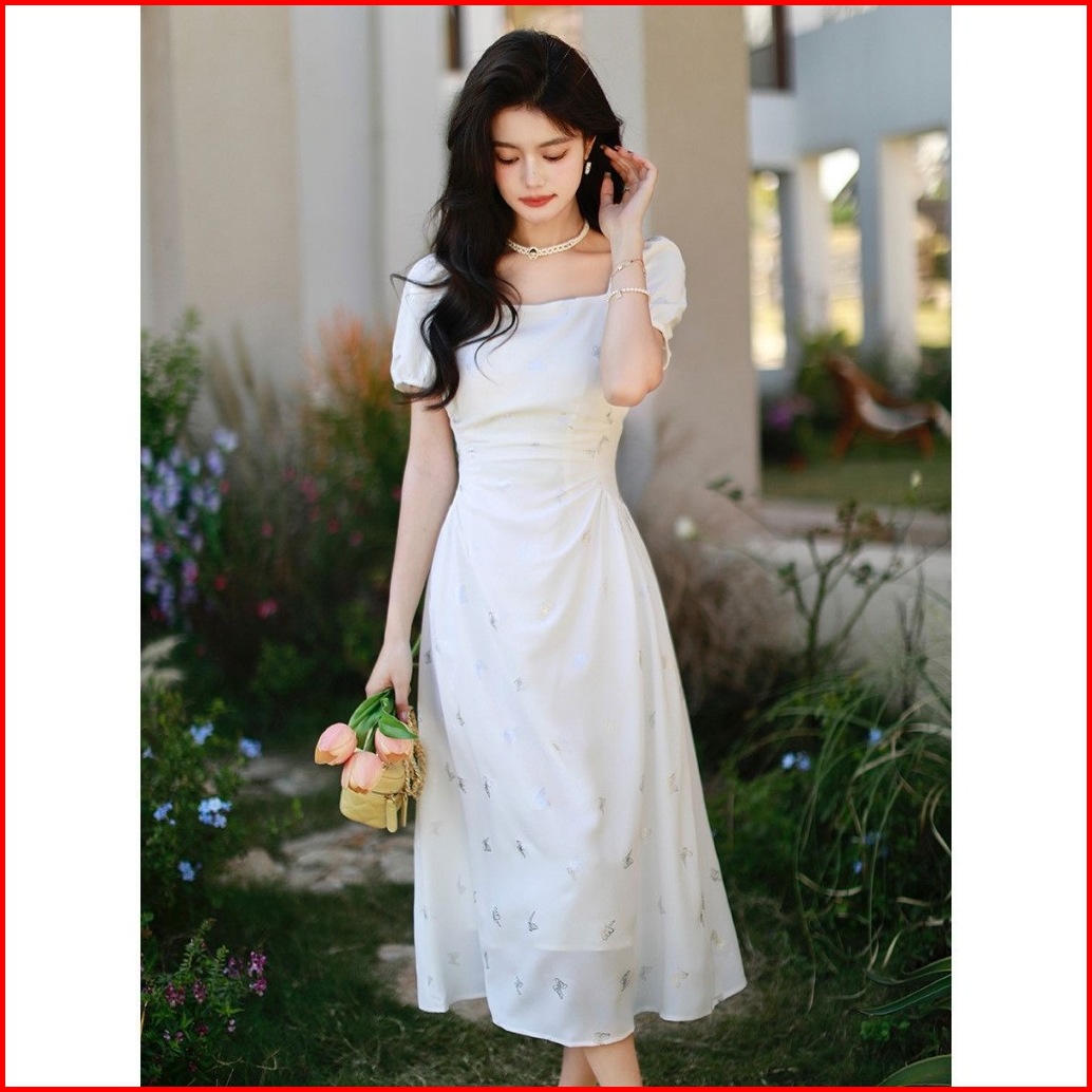 25oclock Dress Leher Persegi Motif Kupu-kupu Metalik