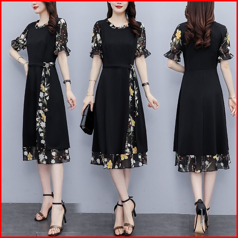 Susana Id Floral Dress Daisy Chiffon Black Fd023