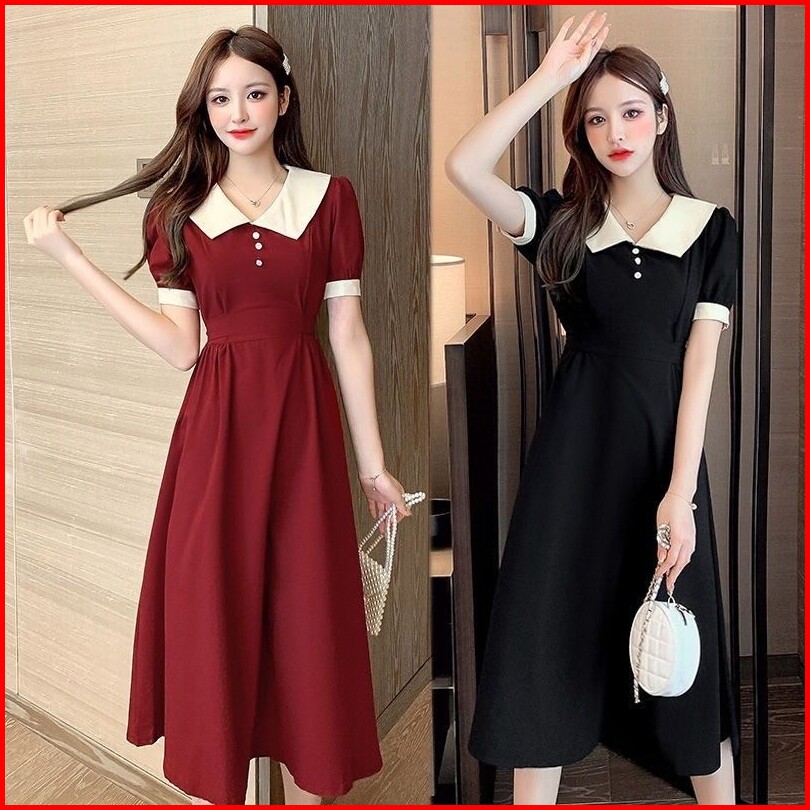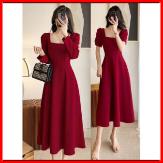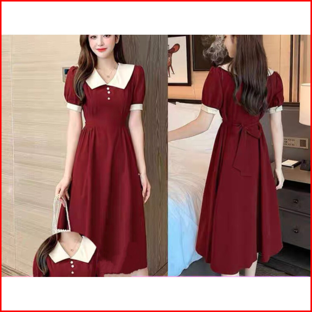 Meirong Baju Long Dress Merah Wanita Lengan Pendek Natal Terbaru 2025 Gaun Pesta Mewah Elegan Korean Style