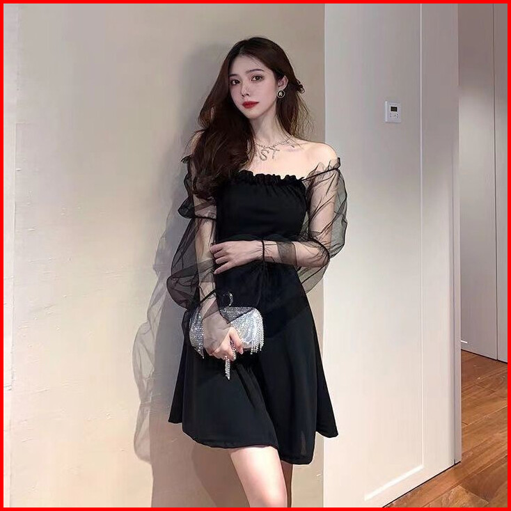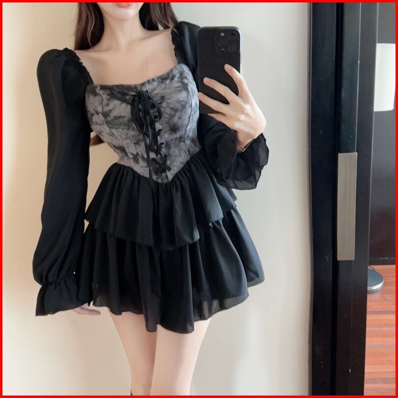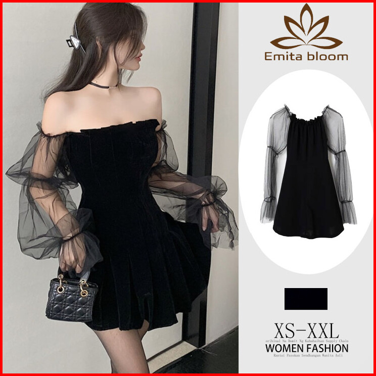 Emita Bloom Dress Lengan Panjang Lace Korean Style Mini Dress Hitam Wanita Kekinian Kondangan Simple Elegan Cantik Pesta