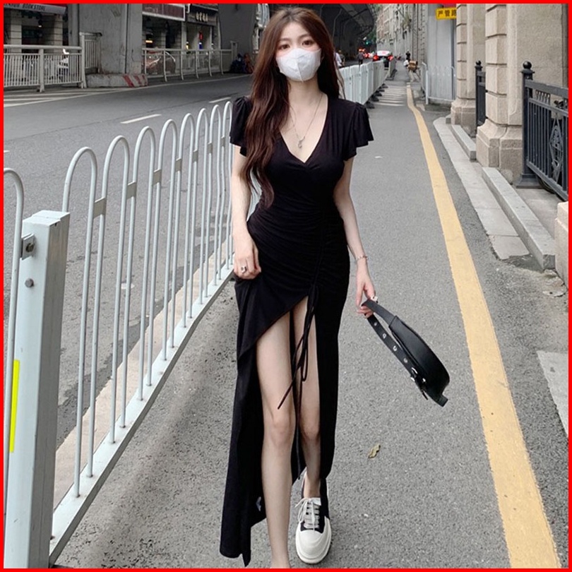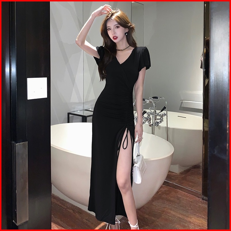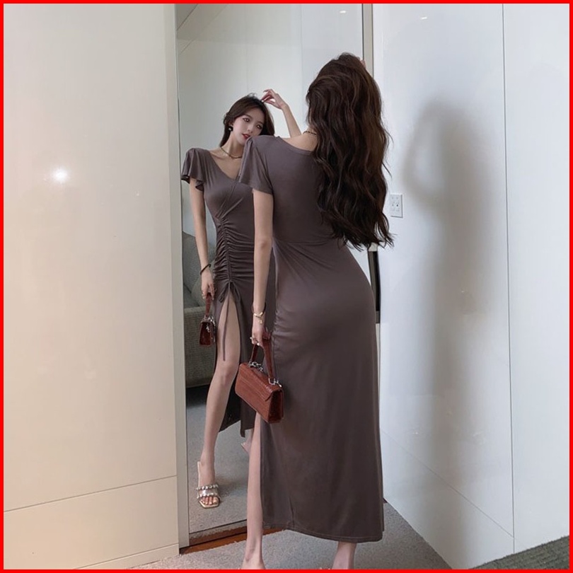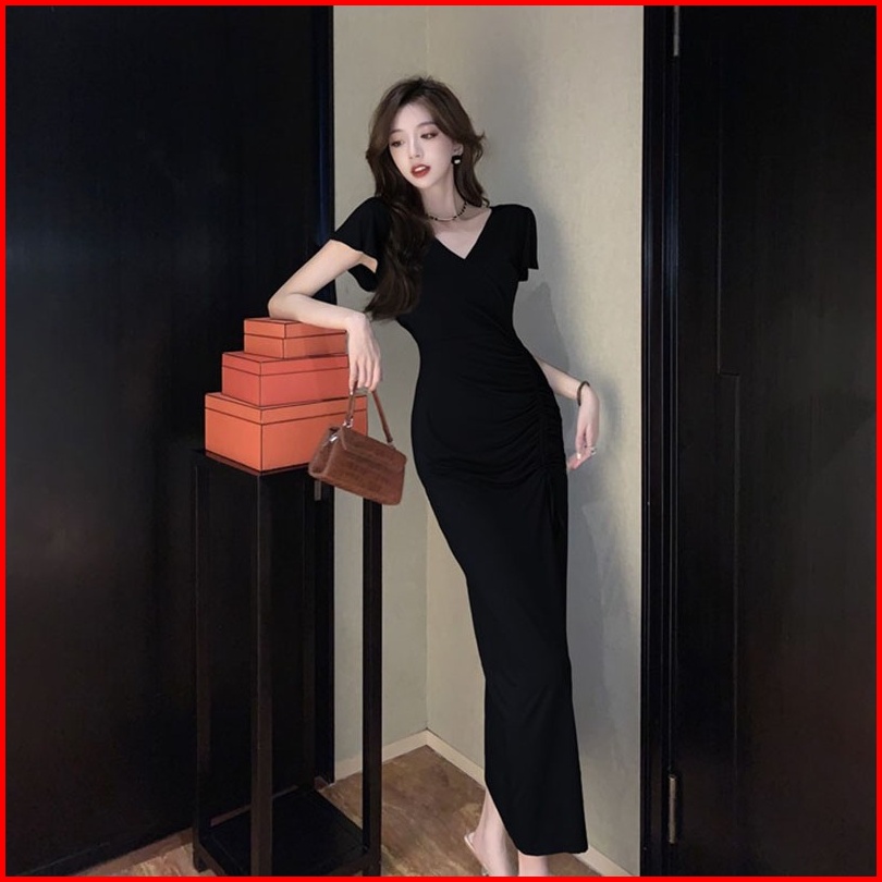 Newlan Qz074 Longdress Rib Serut Korean Long Dress Terusan Panjang Dress Bodycon Maxi Dress Korea Dress Dress Kasual Pol