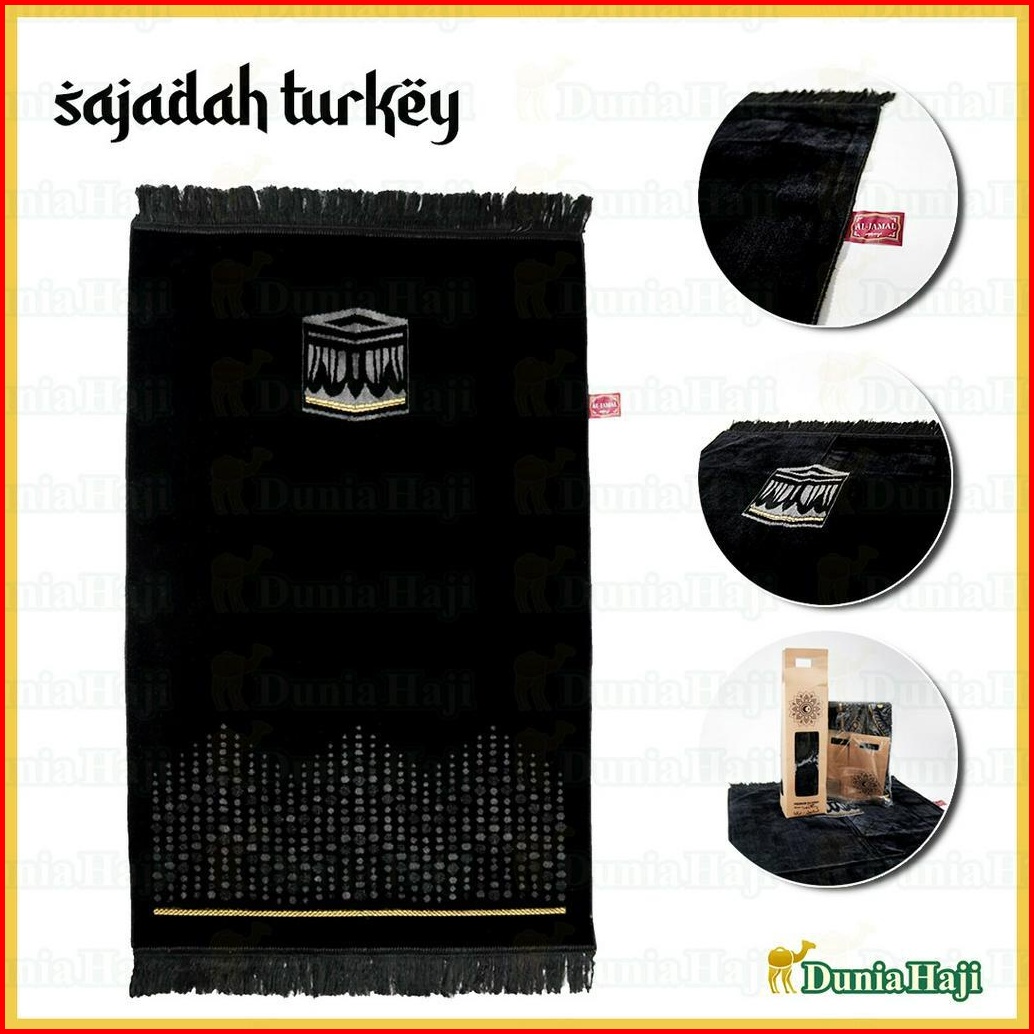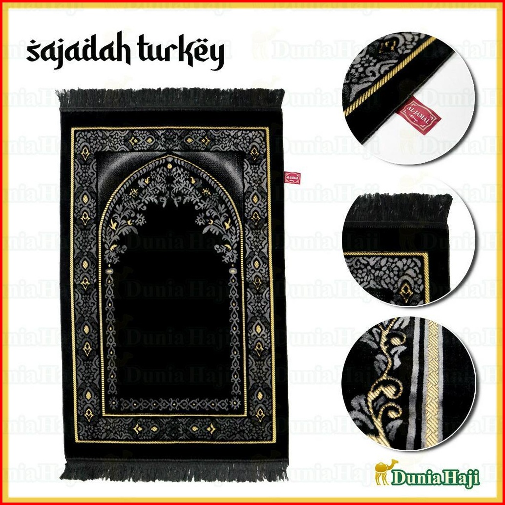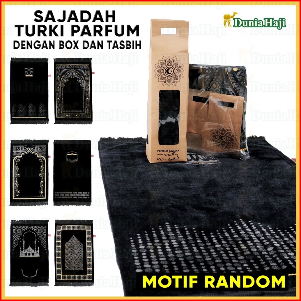 Motif Random Sajadah Hitam Besar Turki Wangi Parfum Sajadah Hitam Tebal Halus Free Box Tasbih