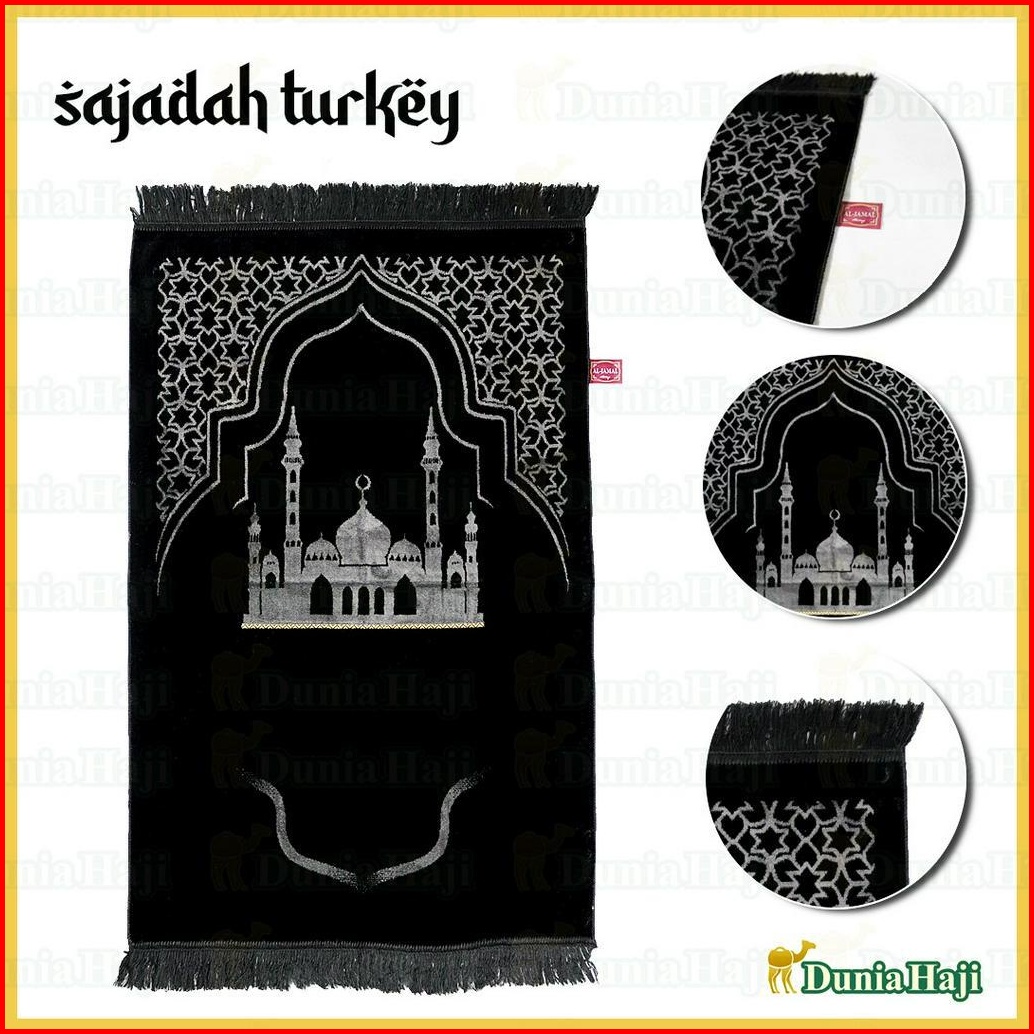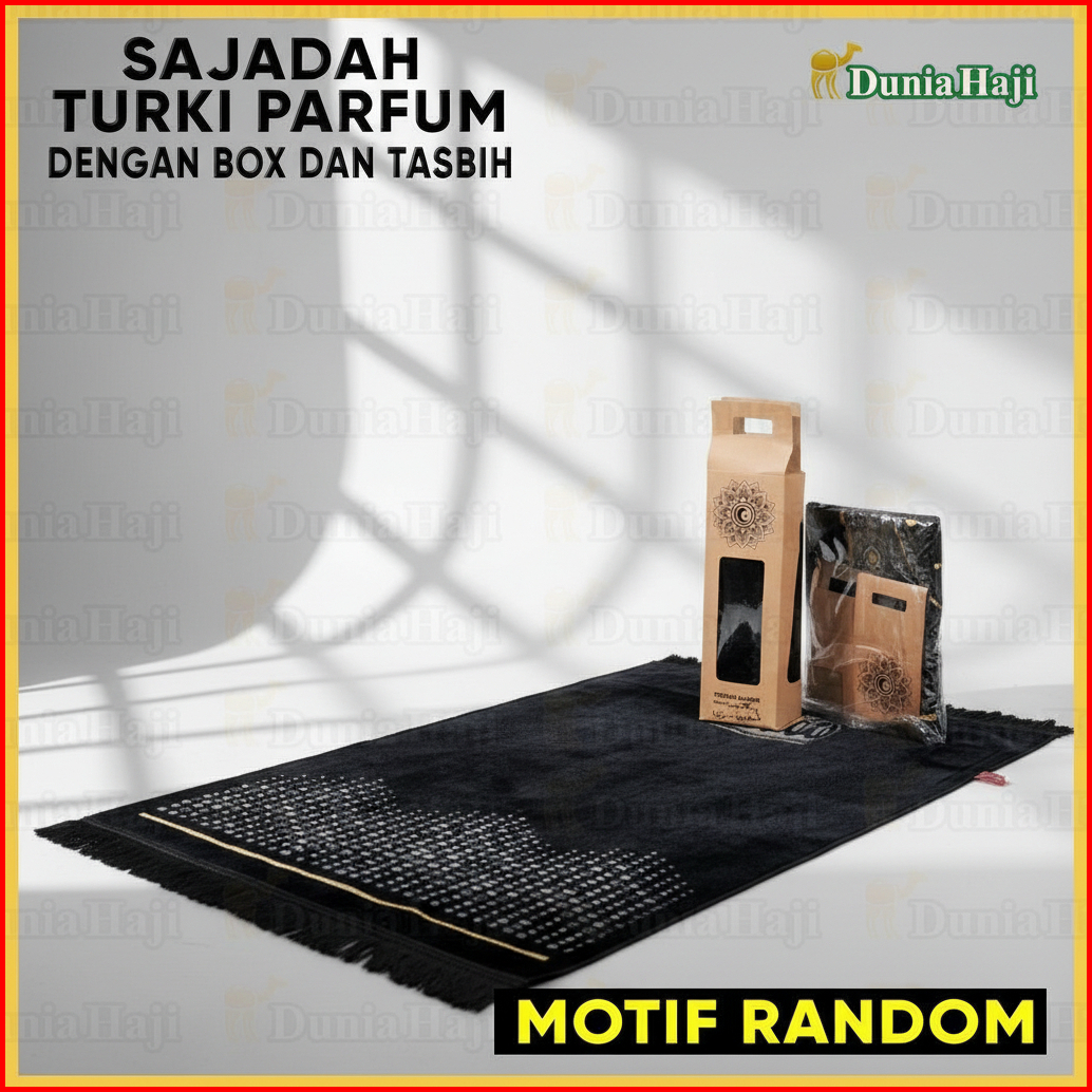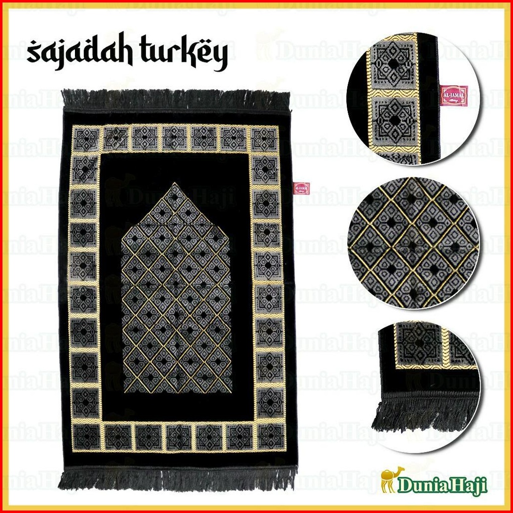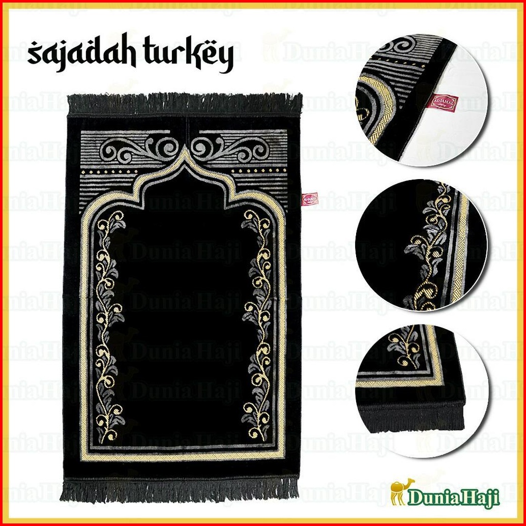 Motif Random Sajadah Hitam Besar Turki Wangi Parfum Sajadah Hitam Tebal Halus Free Box Tasbih
