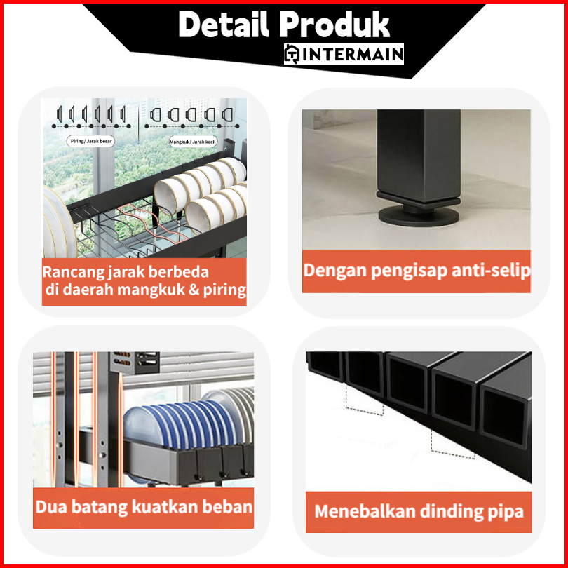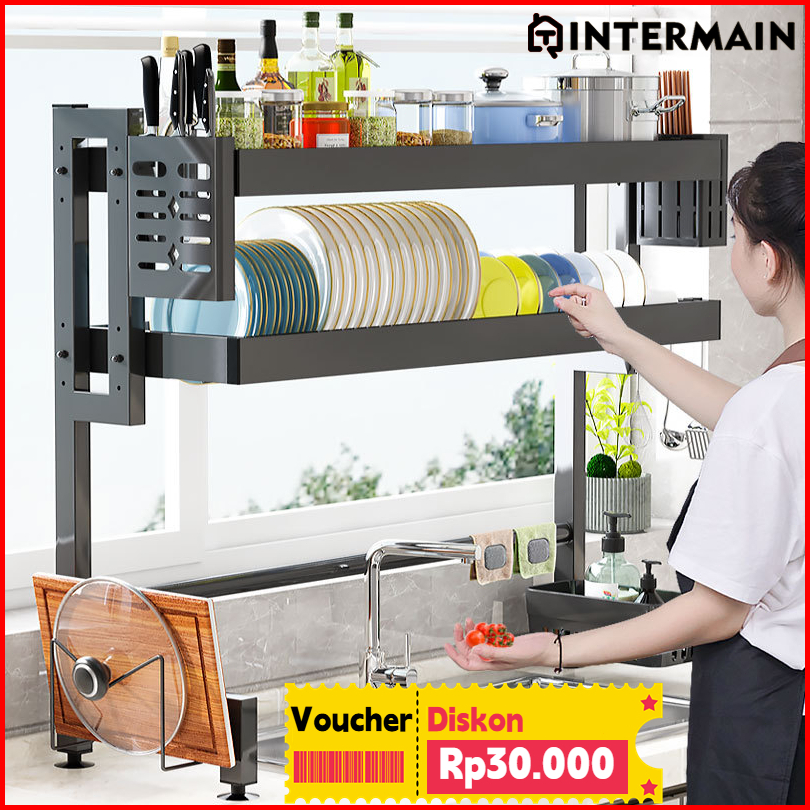 Rak Piring Multifungsi Stainless Steel Penyimpanan Piring Dapur Mudah Digunakan Praktis In06