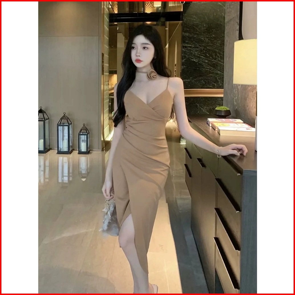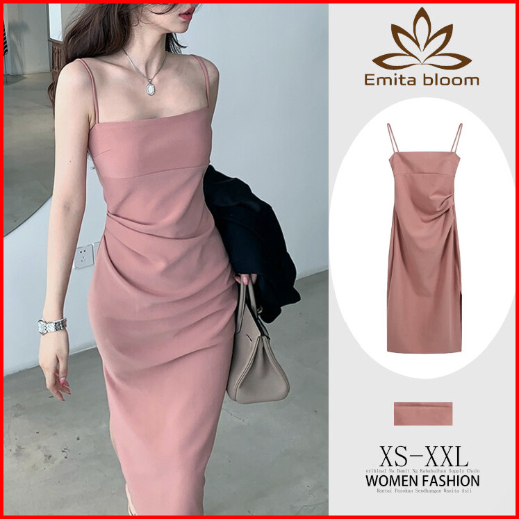 Emita Bloom Long Dress Pink Soft Panjang Elegan Korean Style Dress Tali Kecil Bali Dress Beach Summer Cantik Ke Pantai T