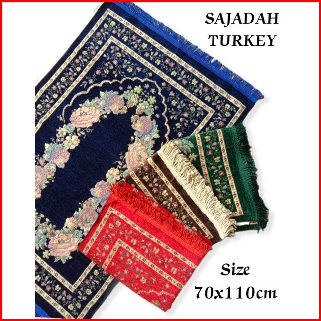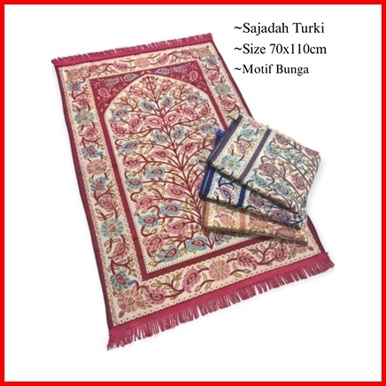 Sajadah Turki Premium 70 110cm Rumbai Rajut Bordir Bunga Elegan Eksklusif