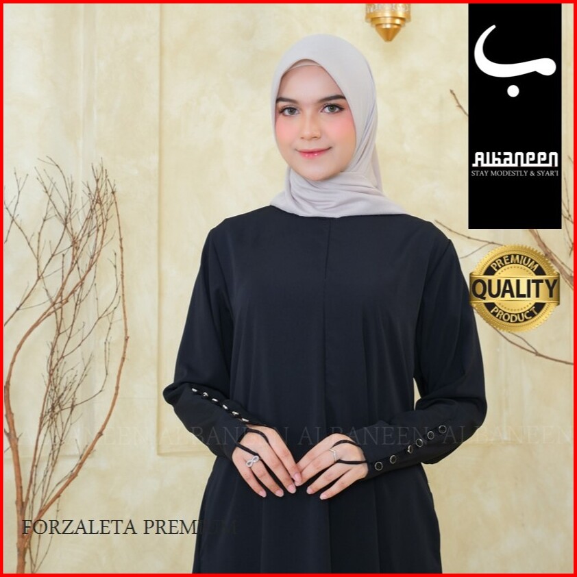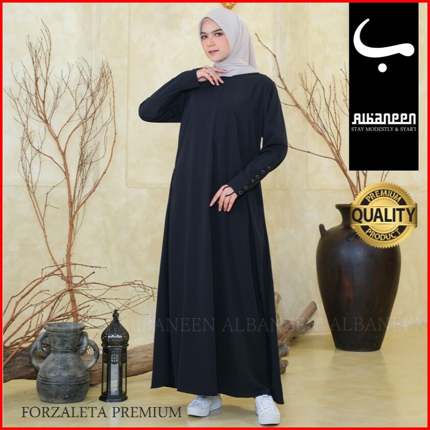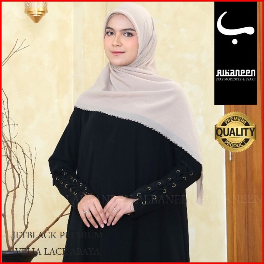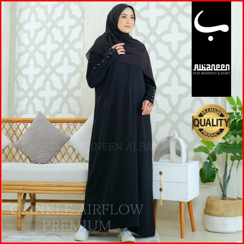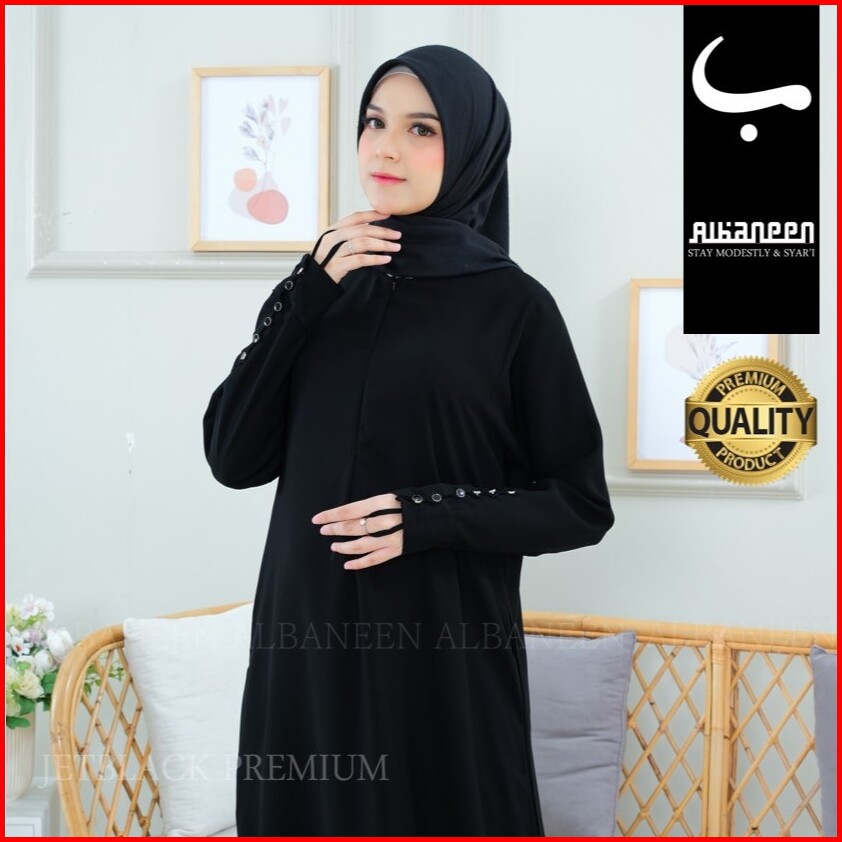 New Mola Dress Gamis Hitam Jetblack Kiara Polos Premium Abaya Hitam Anti Uv Mewah Albaneen.syari Ori Untuk Umroh Dan Haj