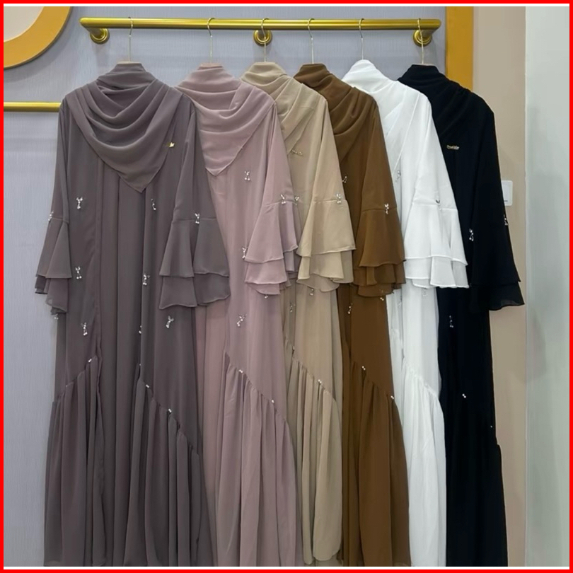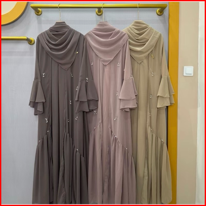 Dfm - Zaina Abaya Set Hijab Segiempat Gamis Abaya Wanita Terbaru Bahan Ceruty Armany Baby Doll Full Puring