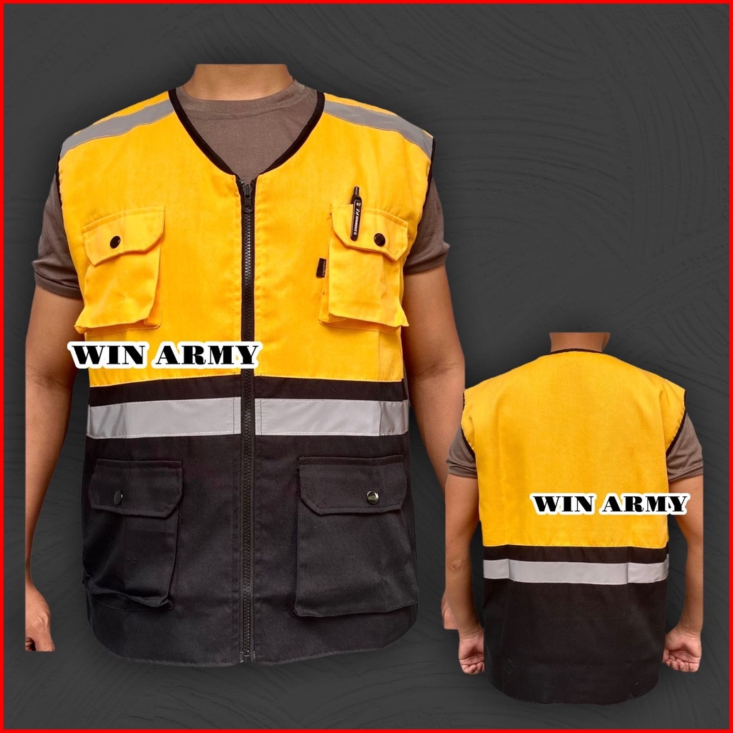 Rompi Proyek - Rompi Safety - Rompi Tambang - Rompi Kain- Rompi K3 - Rompi 5 Kantong - Rompi Kerja Lapangan Outerwear -