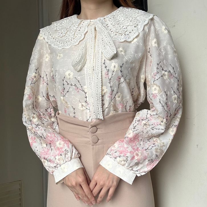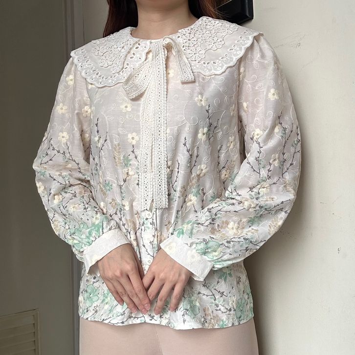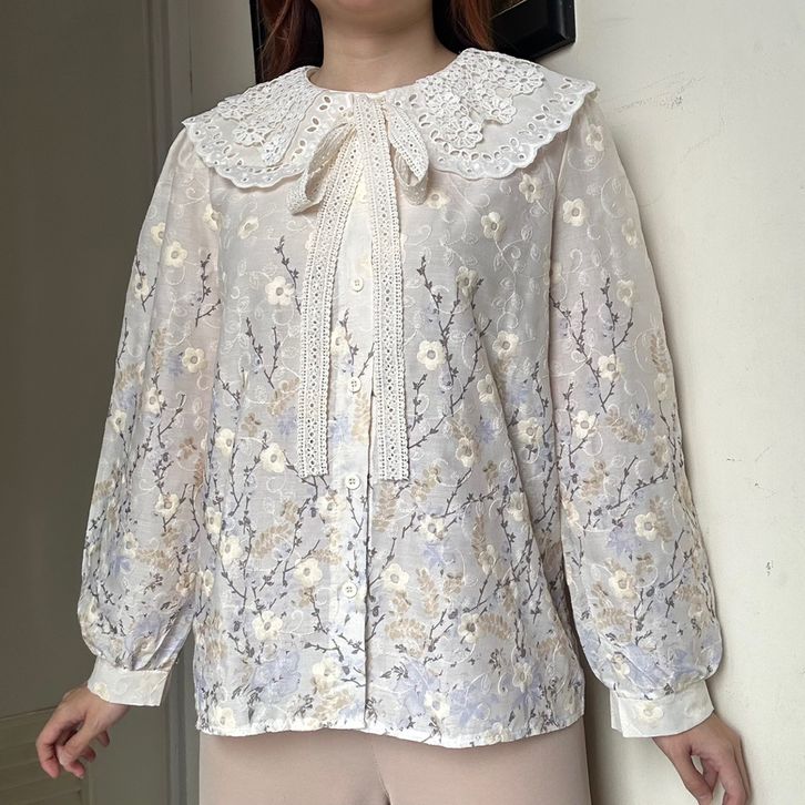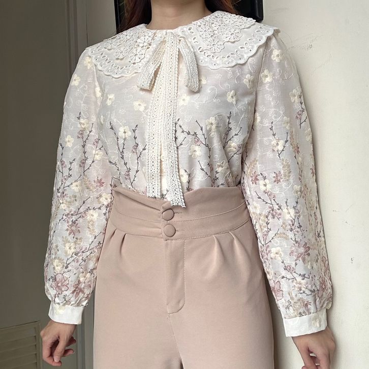 (TERMURAH)Mimi BKK Top atasan kemeja blouse wanita katun bordir motif renda pita korean style by biel the label