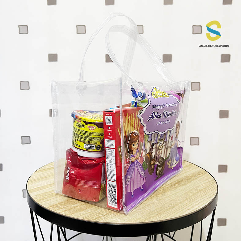 50PCS Custom Tas Mika Transparan Bento Tas Ulang Tahun Souvenir Hampers Ultah Goody bag