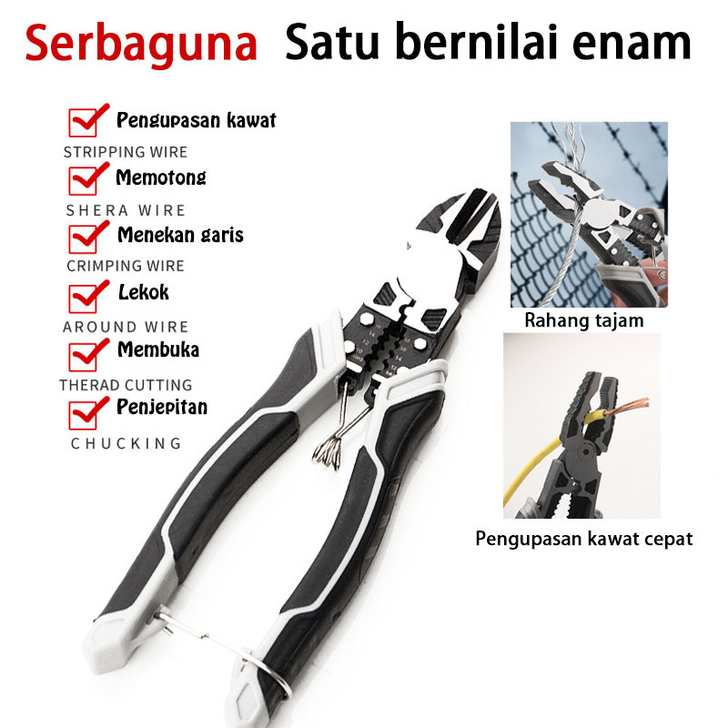 Tang Multifungsi Lancip/Potong Wire Cutter/Tang Pemotong 9 in 1/Tang Kombinasi Multifungsi +PVC Handle