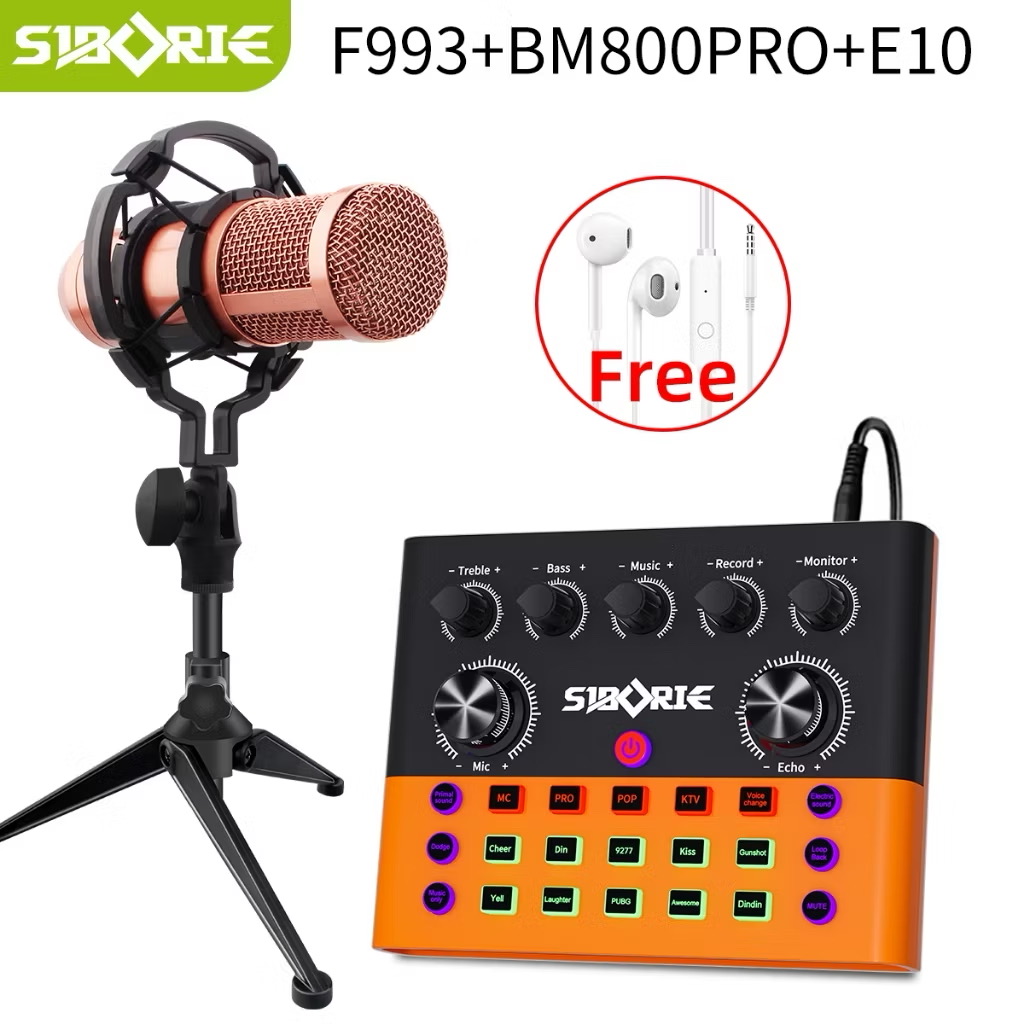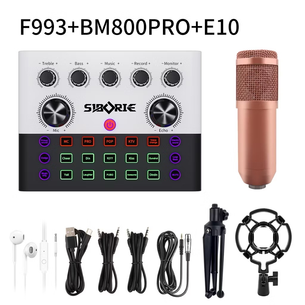 Siborie【Free Headset】Soundcard F993+BM800PRO Mic Paket Lengkap Mixer Bluetooth Sound Card For Streaming Langsung DJ
