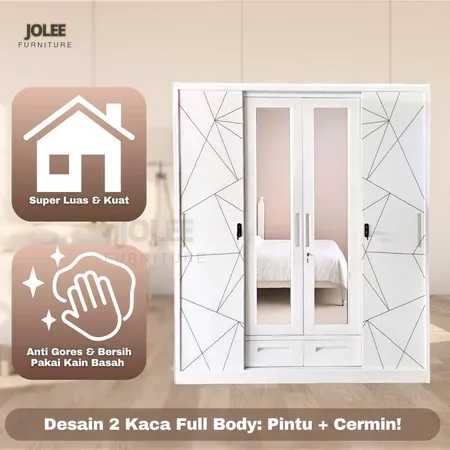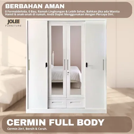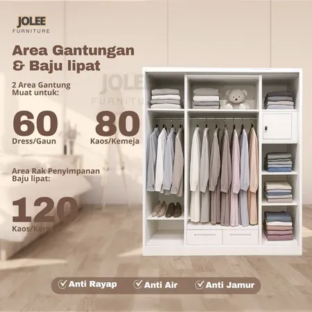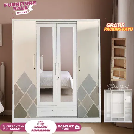 Lemari Pakaian Besi 4 Pintu Jumbo Lebar 157.4cm1 Batang Rak Baju