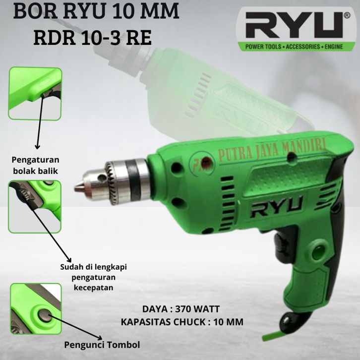 Ryu Mesin Bor 10 Mm RDR 10-3 RE Reversible & Variable Speed