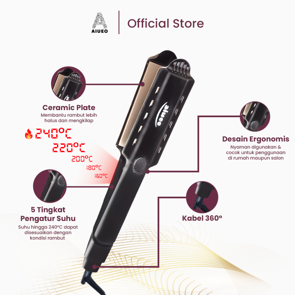 Alat Catok Rambut 3in1 Plat Besar Untuk Rambut Ikal Membandel Teknologi Profesional Garansi