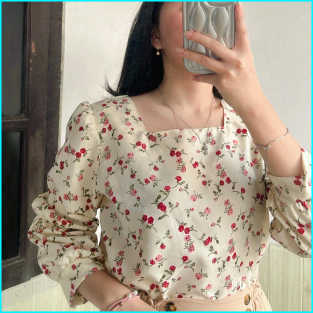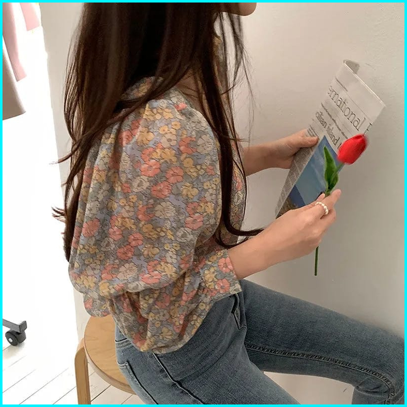 Stevani Margaritha Twist Vintage Floral Korean Blouse