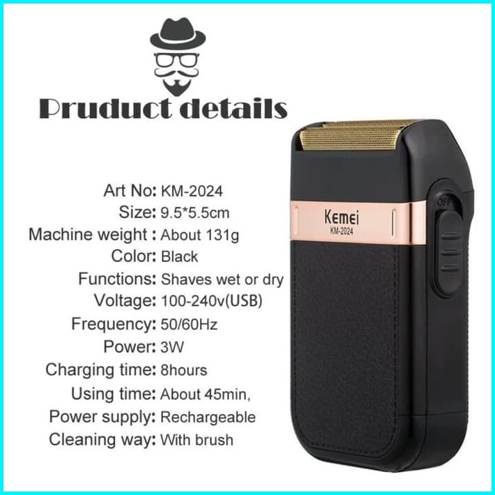 Kemei Km-2024 Usb Wet And Dry Shaver Trimmer Alat Cukur Jenggot Kumis