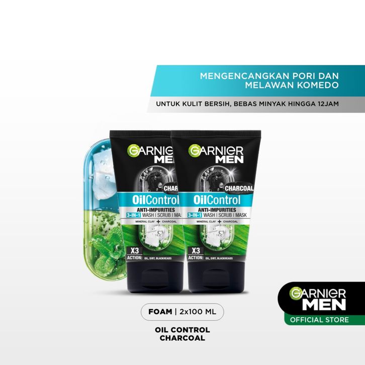 PAKET HEMAT ISI 2 Garnier Men Oil Control 3 In 1 Charcoal Foam Skin Care - 100mili Perawatan Kulit Wajah Berminyak