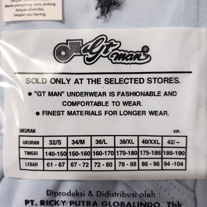CELANA DALAM GT MAN PAKET 6 PCS + MASKER 2 PCS CD GT MAN PRIA704 BW