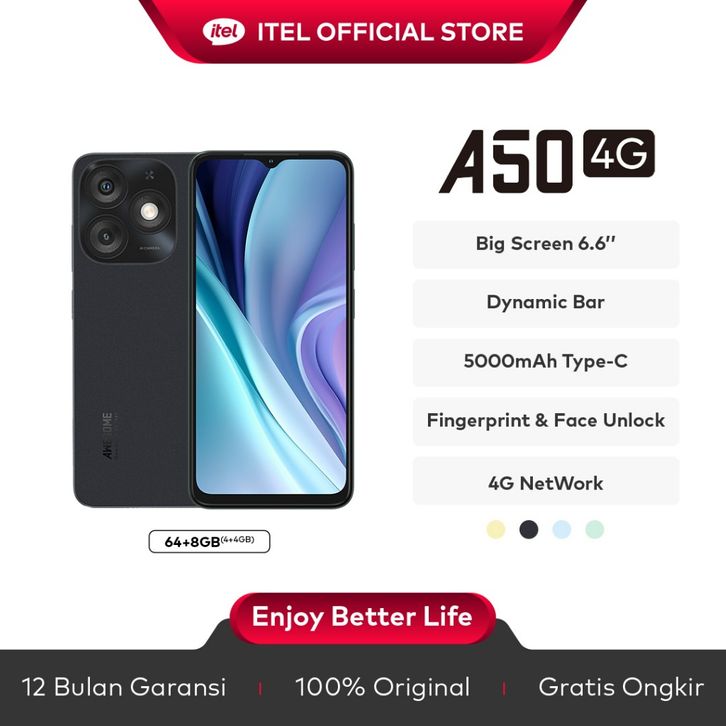 itel A50 RAM 4+64GB - Screen Dynamic Display itel A 50 Official Store HP Murah 1jt Tanpa DP 0 Cuci Gudang 1 Jutaan