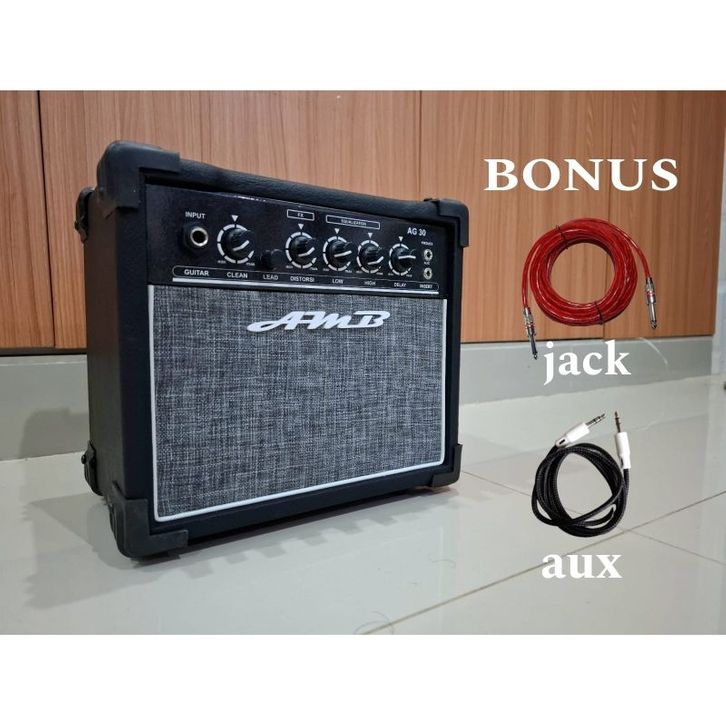 Ampli gitar mini amb 3 input DELAY distorsi aux.phones headset banyak bonus
