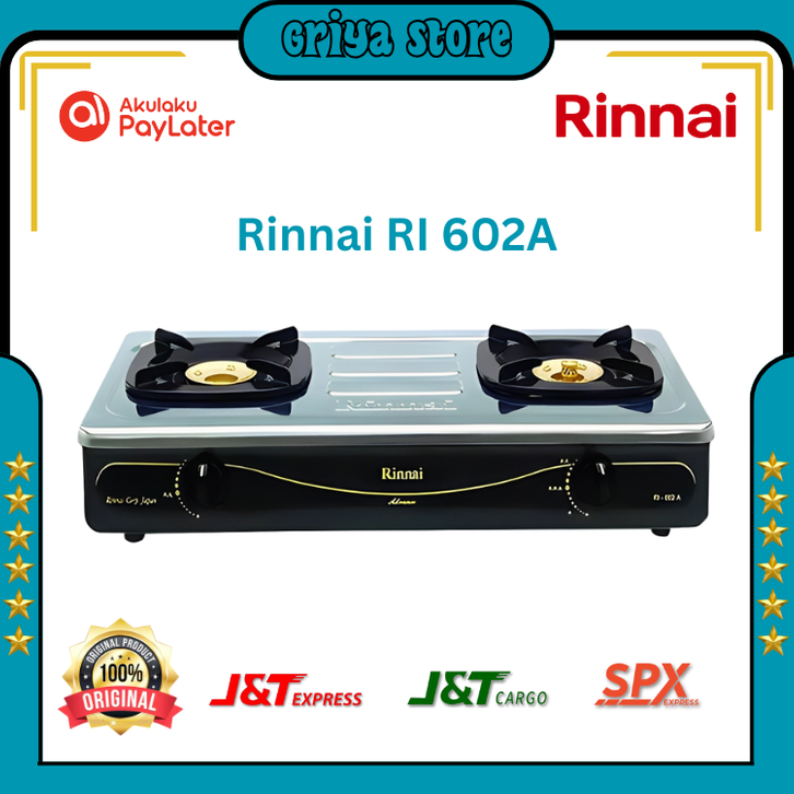 KOMPOR GAS RINNAI 2 Tungku RI 712 BGX STAINLESS TEMPERED GLASS API BESAR ORIGINAL BERKUALITAS