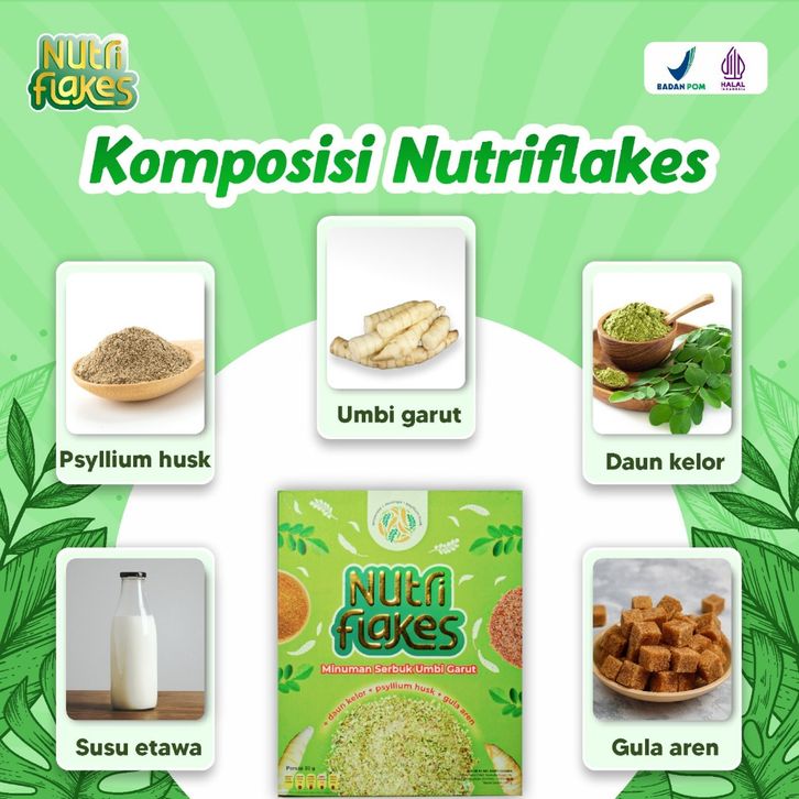 𝐍𝐮𝐭𝐫𝐢𝐟𝐥𝐚𝐤𝐞𝐬 Sereal Umbi Garut - Solusi Atasi Asam Lambung Maag Kronis Gerd Suplemen Makanan Diet 1 Box