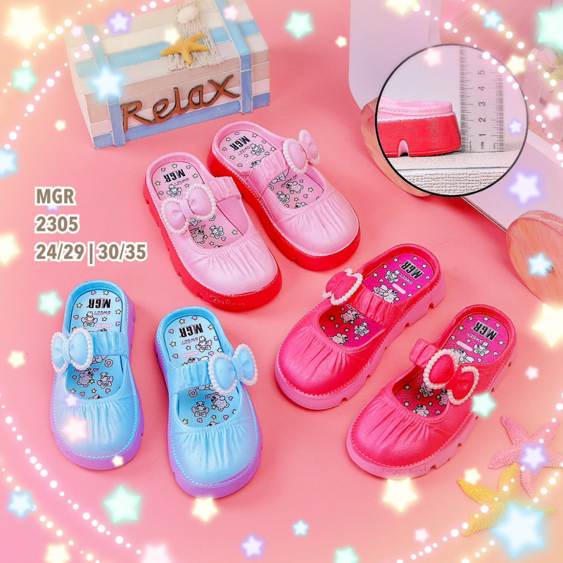 Sepatu Selop Karet Jelly Anak Cewek Pita Mutiara Tatak Melody Elegan Cantik Lucu Impor Mgr Mokaya Balance (2305)/Size 24