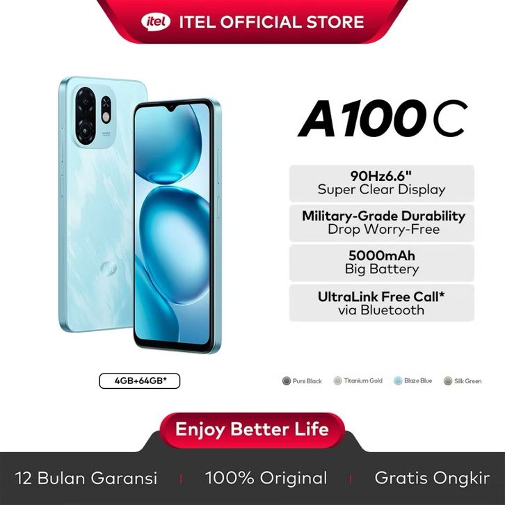 itel A100C RAM 4 64GB Tahan Banting Military Grade 5000mAh Official Store Cuci Gudang HP Murah Tanpa DP 0 1 Jutaan 1jt