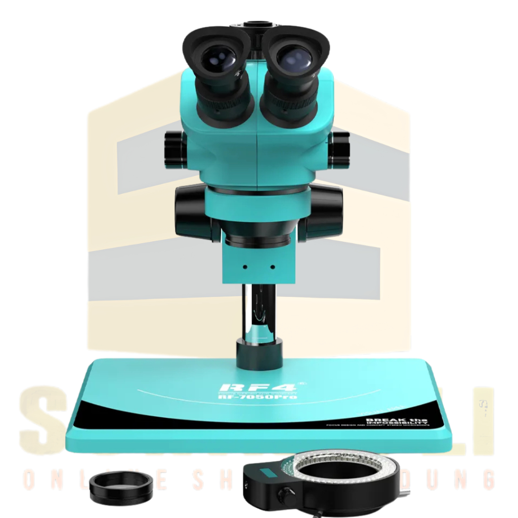 RF4 RF7050Pro 7-50X Synchronous Zoom Trinocular Stereo Microscope with Aluminum Alloy Base
