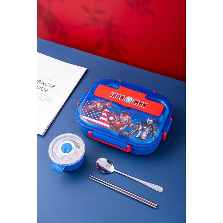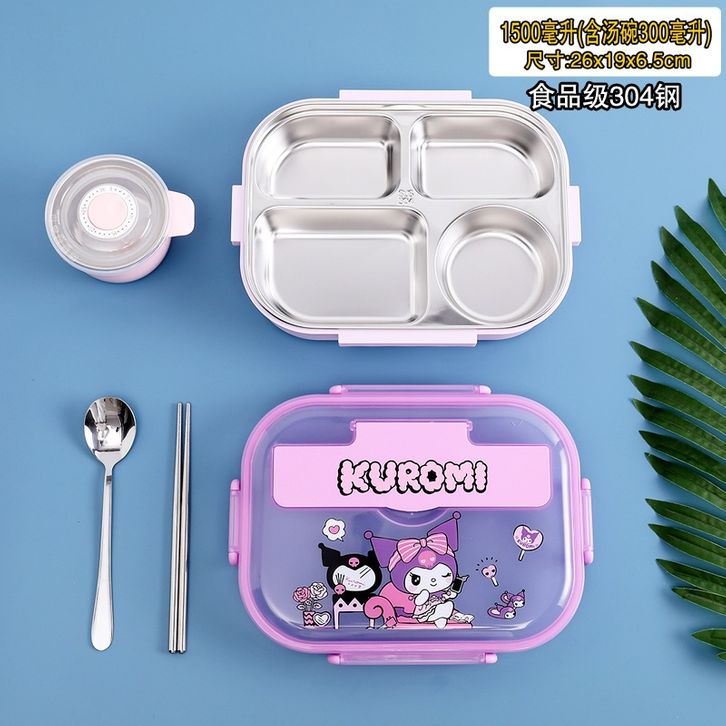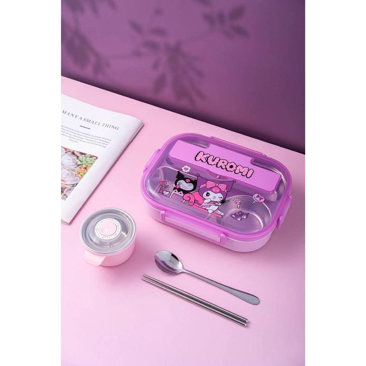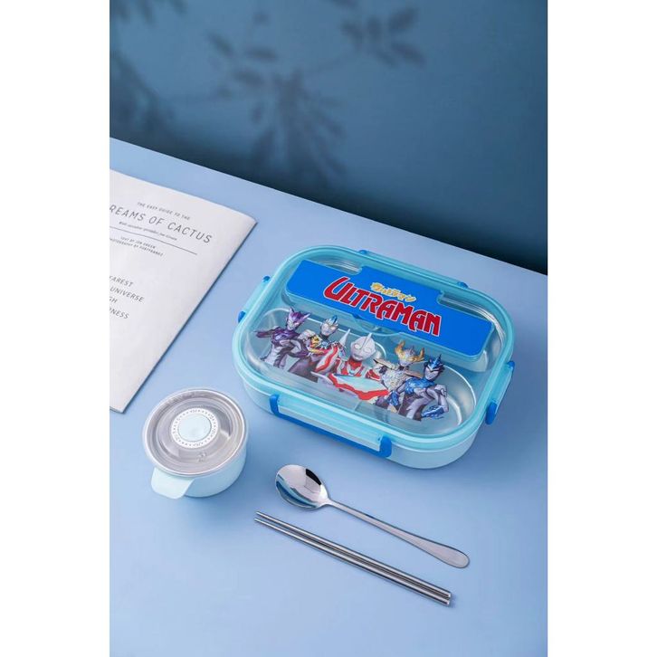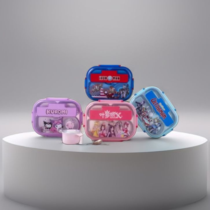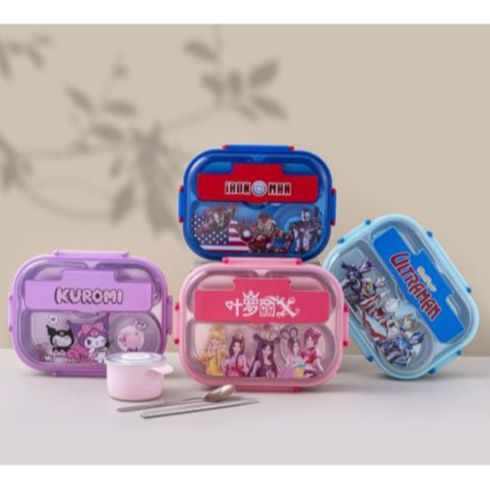 kotak bekal anak Lunch Box Stainless Kotak Makan Kotak Bekal Anak karakter Kuromi,Iron Man Ultraman 4 sekat + tempat s
