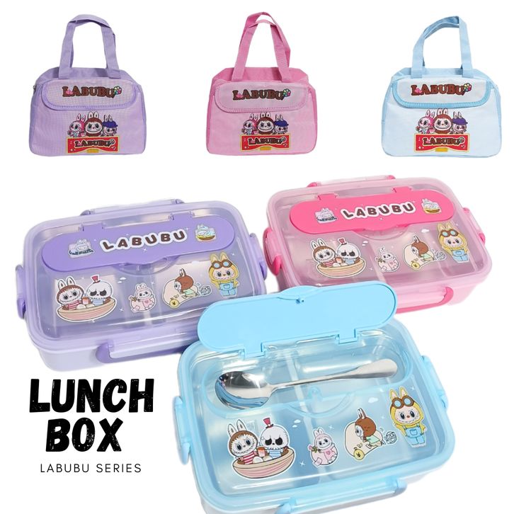 kotak bekal anak Kotak Makan Stainless Labubu Lunch Box Stainless Anak Tempat Bekal Stainless 304 Free Tas Labubu Free