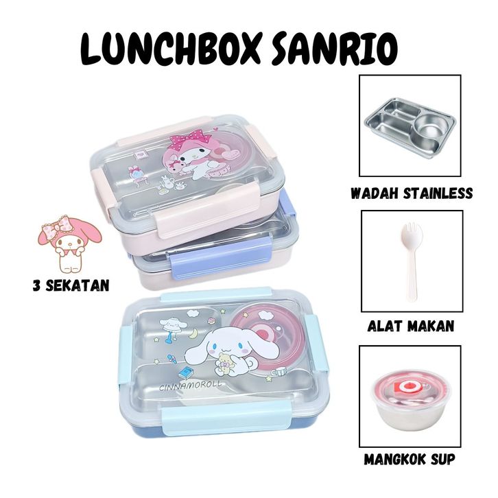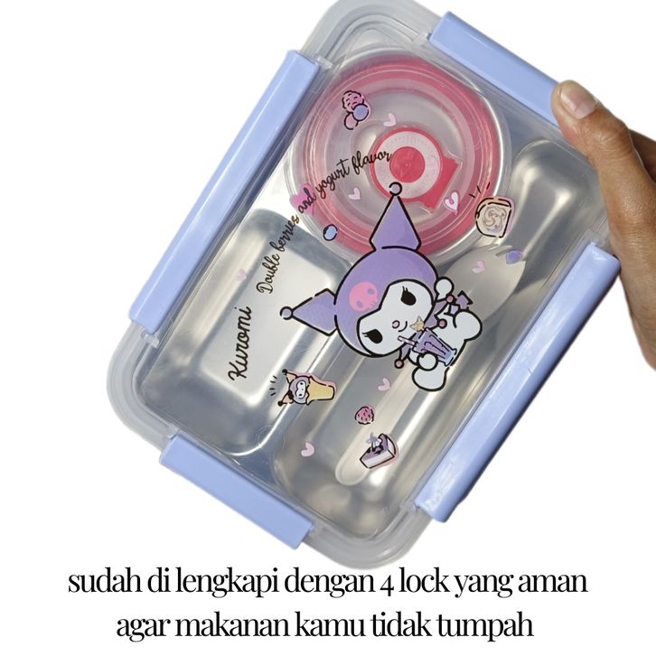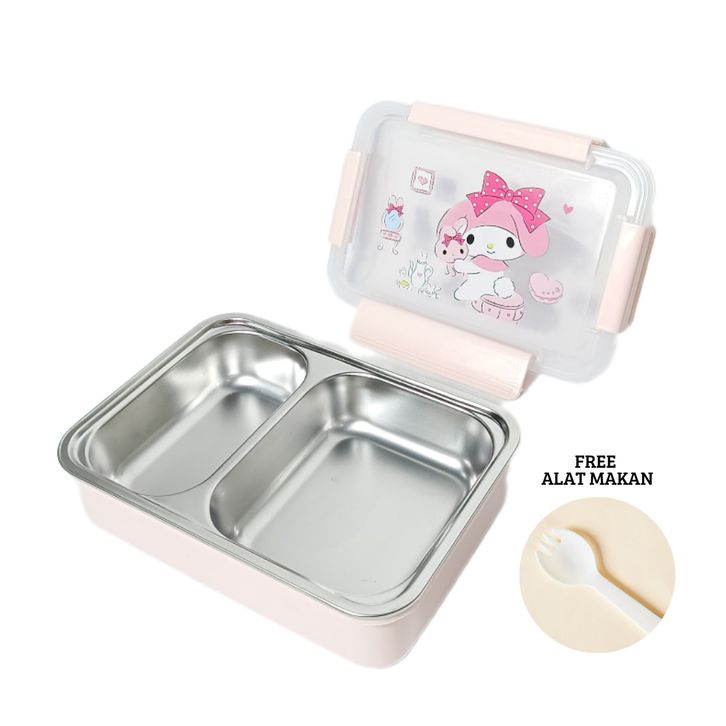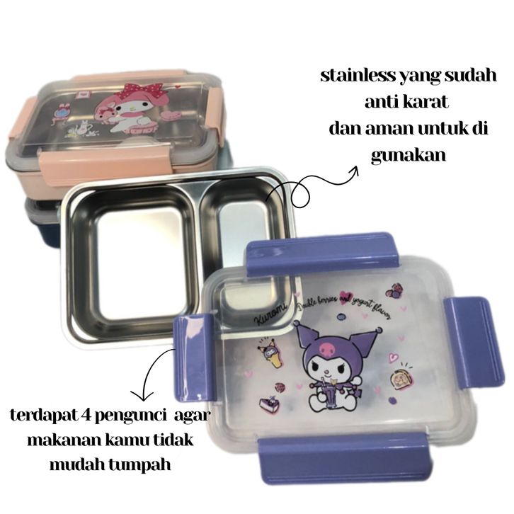 kotak bekal anak Lunch Box Stainless Motif Sanrio Melody Kotak Bekal Makan Anak Kuromi dan Cinnamoroll 1000ml