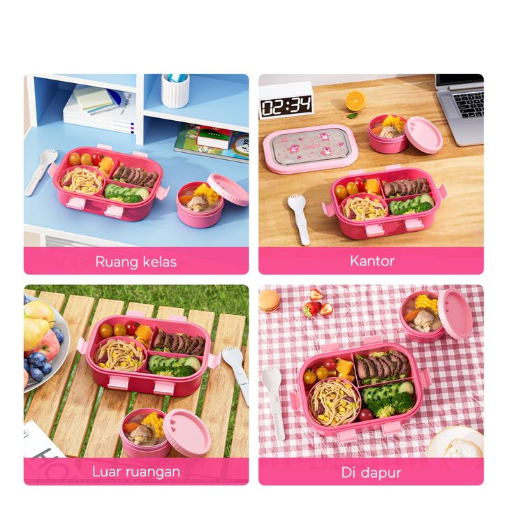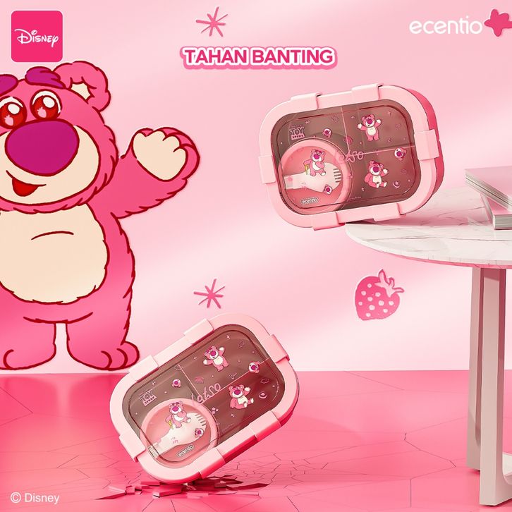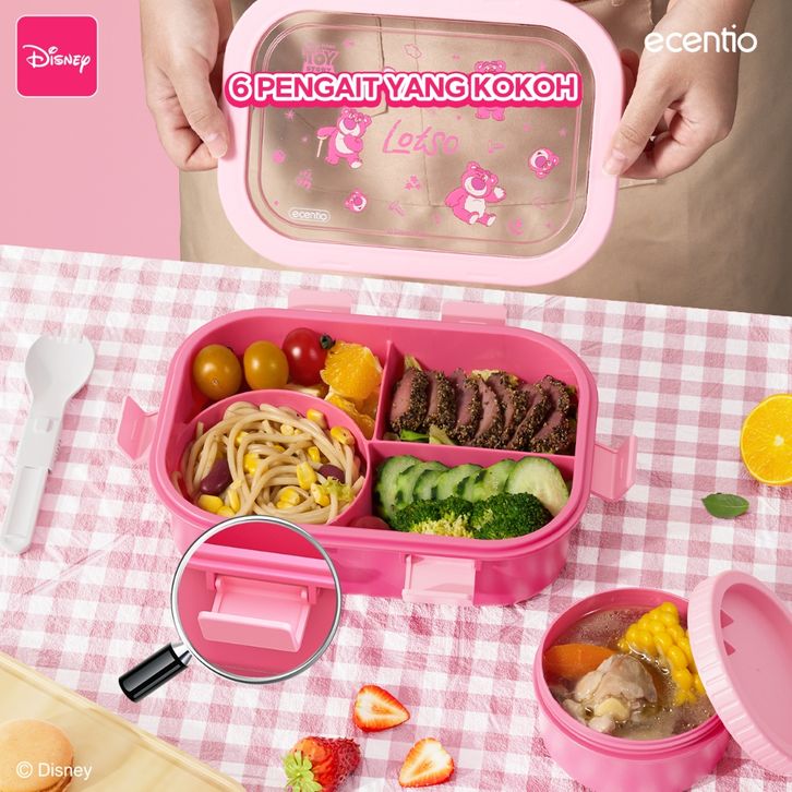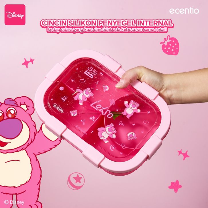kotak bekal anak 【New Launch】ecentio tempat makan anak lunch box 4 Gird 1400ml Disney Lotso lucu sekolah free mangkuk s